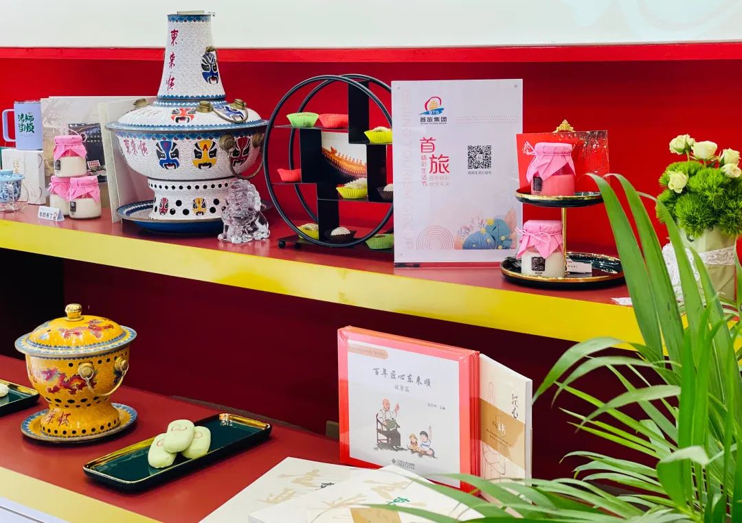 东来顺武汉公司向大家展示了各种景泰蓝铜火锅,国家级非物质文化遗产的手切鲜羊肉,东来顺秘制糖蒜、京味糕点、预包装熟食,以及全新形象的文创产品亮相武汉文博会。