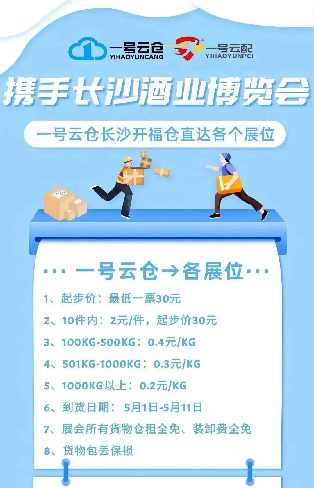 2023年5月9日—5月11日,第四届中国国际名酒博览会(春季)暨2023首届长沙国际酒业博览会将在湖南国际会展中心举行!一号云仓专业的酒水搬运工,为长沙参展商提供免仓租免装卸服务,并10件30元起超低价配送到各展位。具体价格如下: