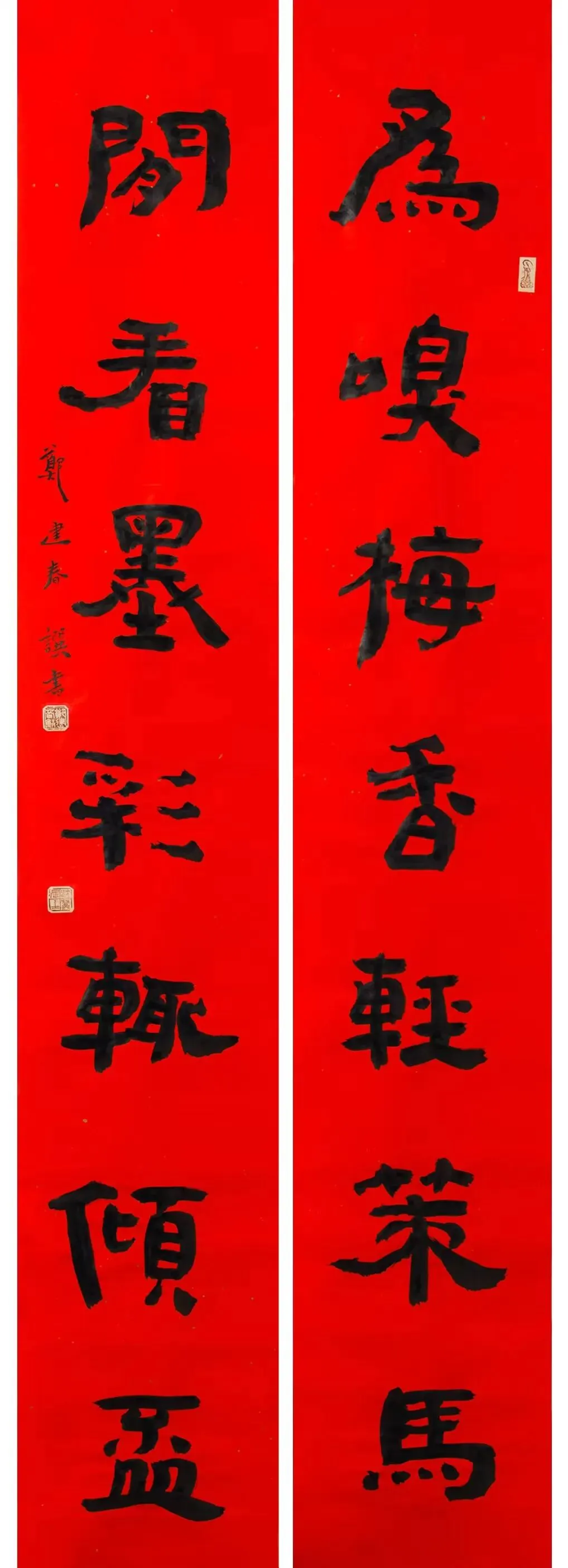 一窗梅影随骏马半榻书香绕玉堂郑沛佳撰并书