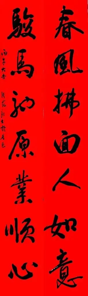 春风拂面人如意;骏马驰原业顺心。