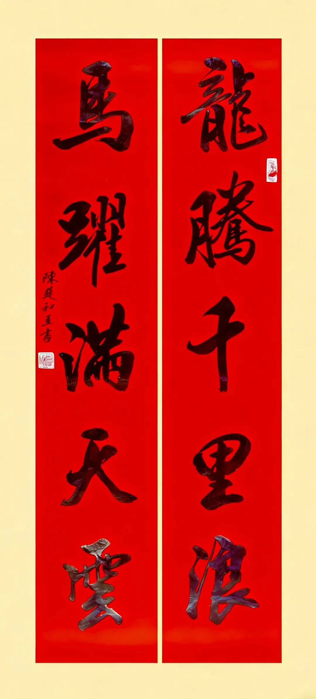 马步腾芳春色满;龙章焕彩物华新。