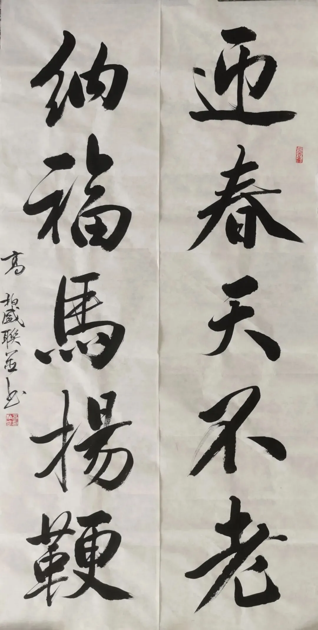 迎春天不老;纳福马扬鞭。