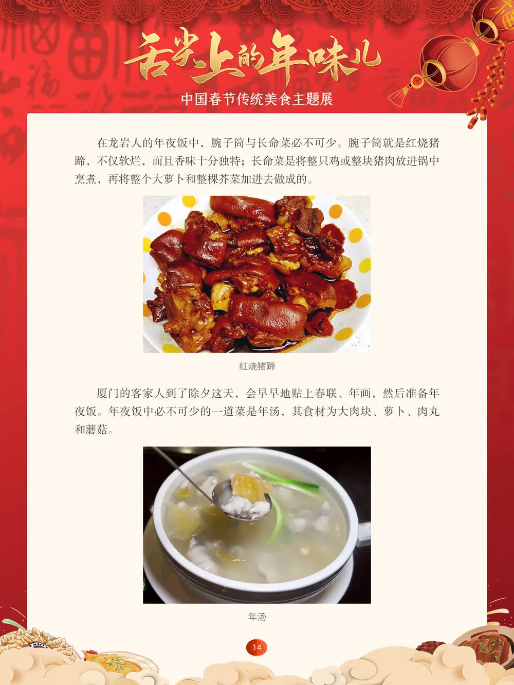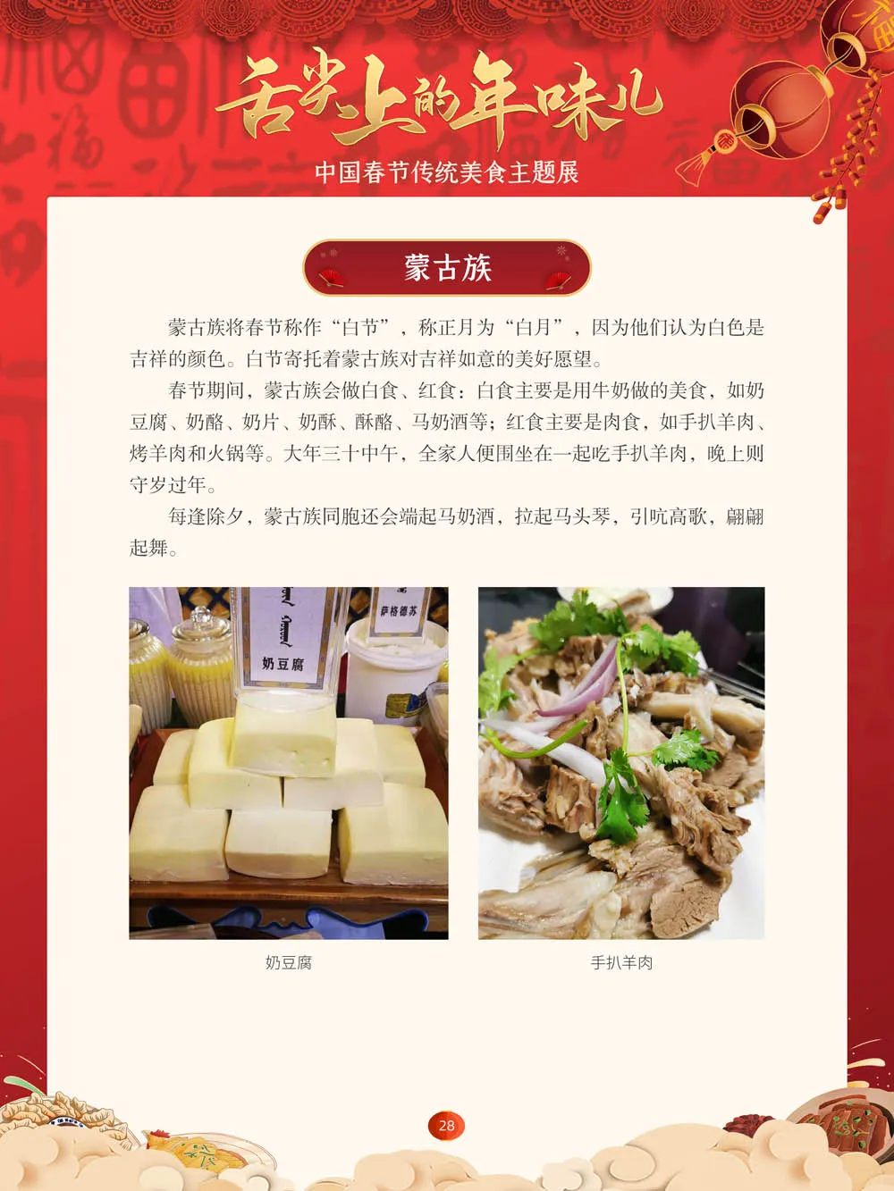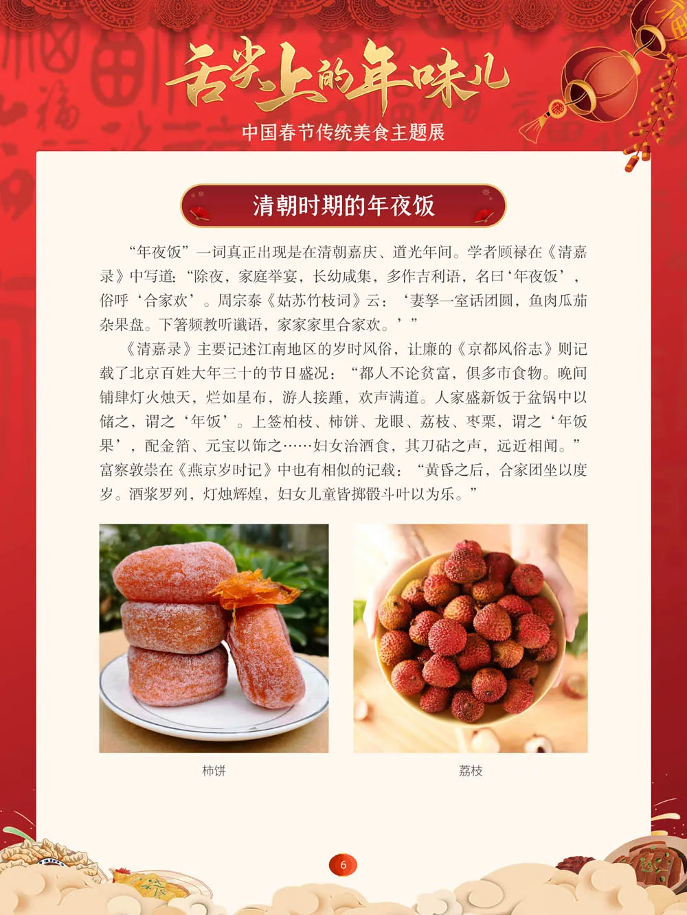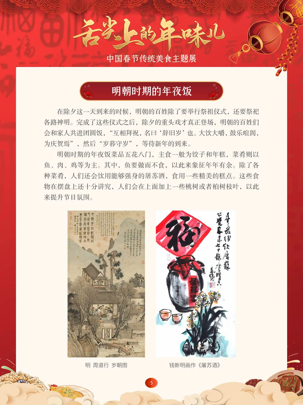 值此新春佳节来临之际,我们特别策划了“舌尖上的年味儿——中国春节传统美食主题展”,分“年夜饭简史”“中国各地春节传统美食”“中国各民族春节传统美食”三个部分,以图文并茂的形式展示我国各地、各民族的春节传统美食,彰显中华传统饮食文化的魅力,并引导大家通过本展览深入了解中国春节饮食文化,感受优秀传统文化的独特魅力。