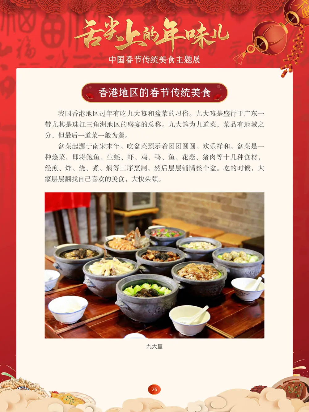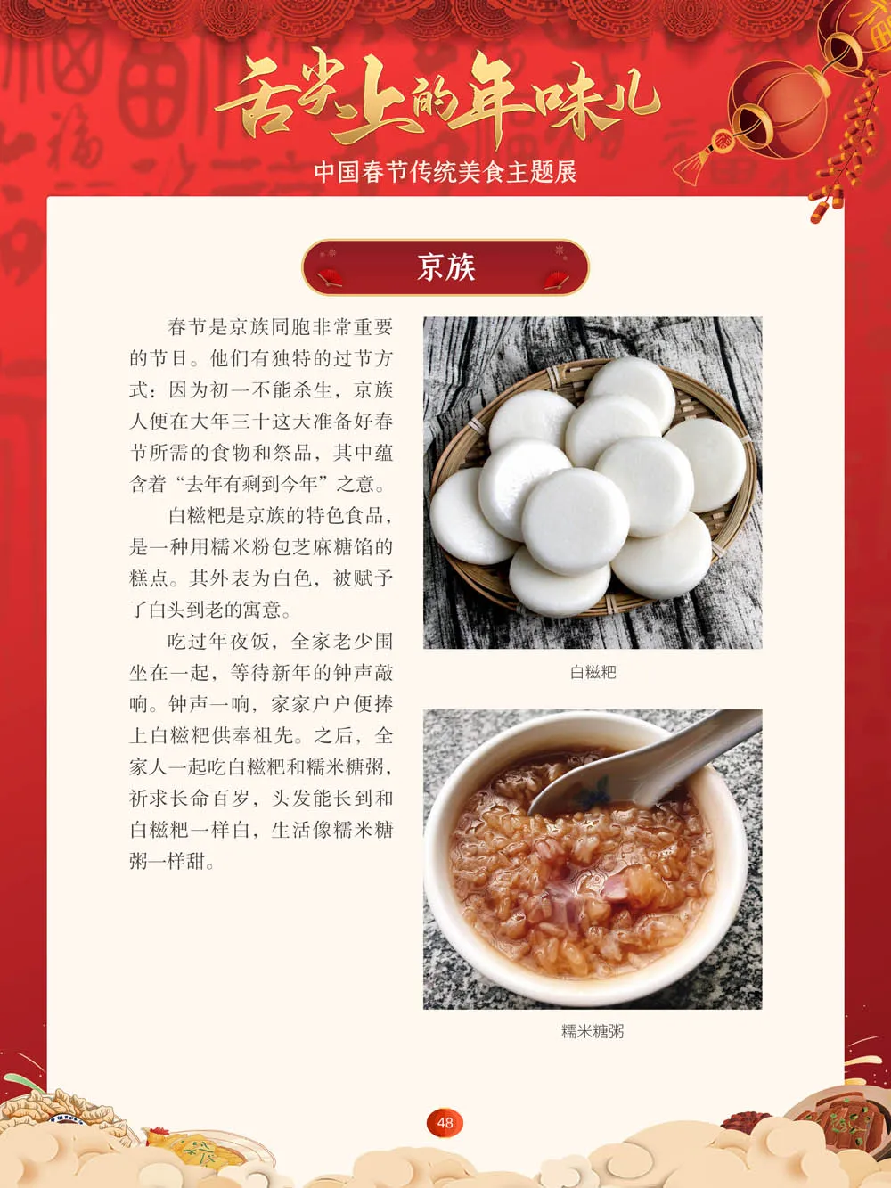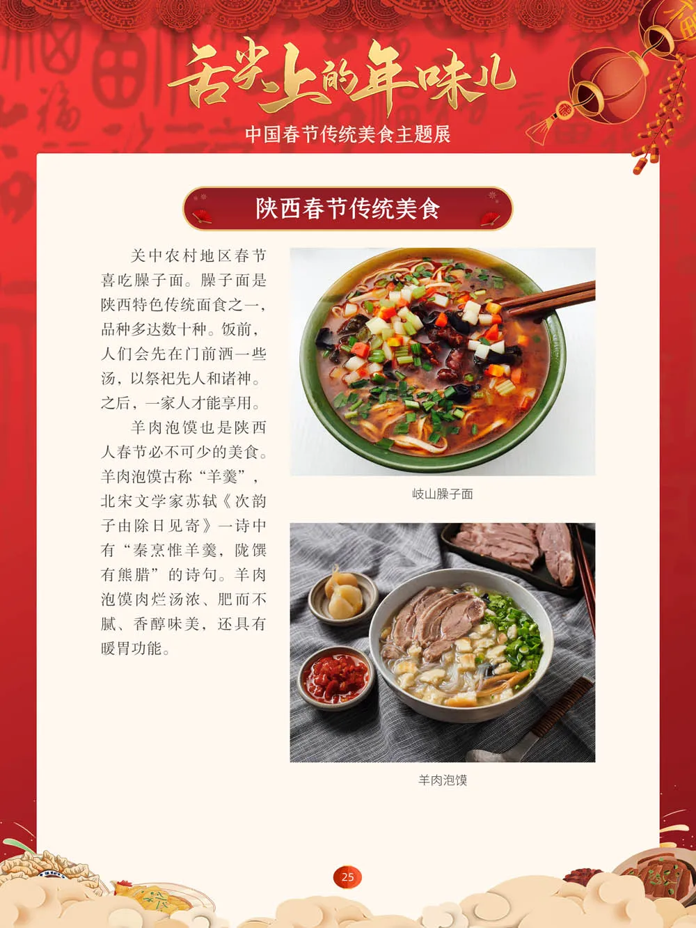值此新春佳节来临之际,我们特别策划了“舌尖上的年味儿——中国春节传统美食主题展”,分“年夜饭简史”“中国各地春节传统美食”“中国各民族春节传统美食”三个部分,以图文并茂的形式展示我国各地、各民族的春节传统美食,彰显中华传统饮食文化的魅力,并引导大家通过本展览深入了解中国春节饮食文化,感受优秀传统文化的独特魅力。