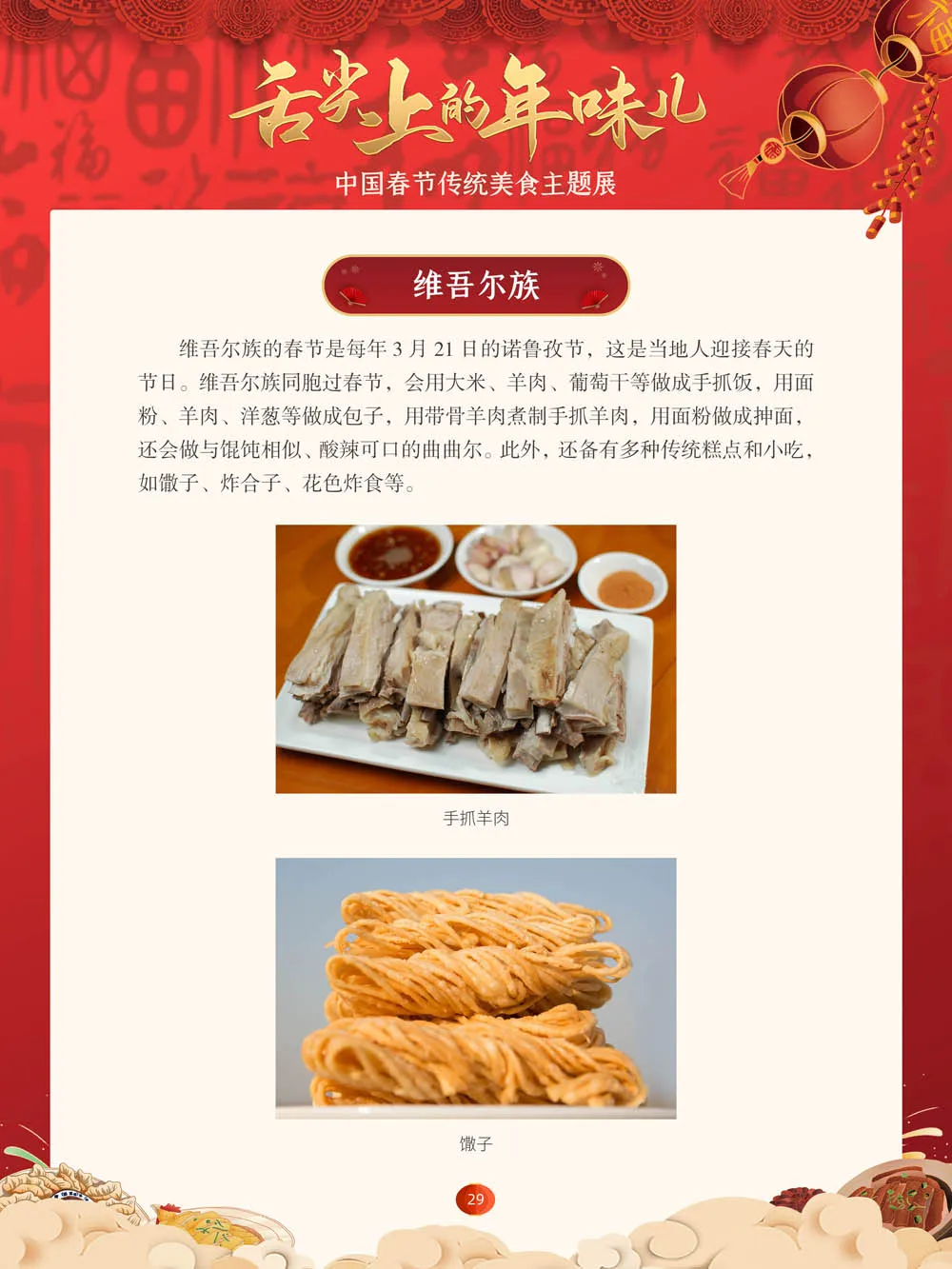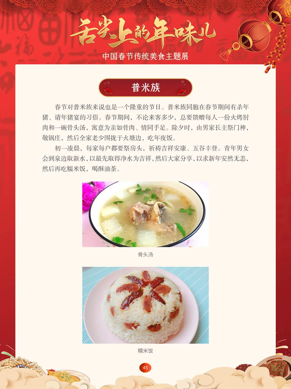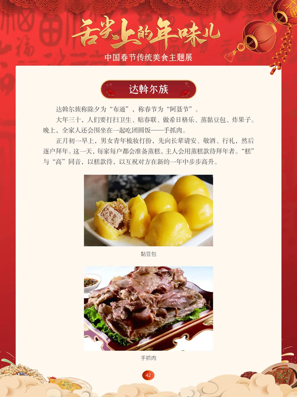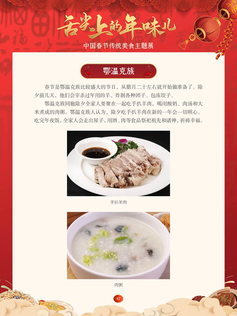 值此新春佳节来临之际,我们特别策划了“舌尖上的年味儿——中国春节传统美食主题展”,分“年夜饭简史”“中国各地春节传统美食”“中国各民族春节传统美食”三个部分,以图文并茂的形式展示我国各地、各民族的春节传统美食,彰显中华传统饮食文化的魅力,并引导大家通过本展览深入了解中国春节饮食文化,感受优秀传统文化的独特魅力。