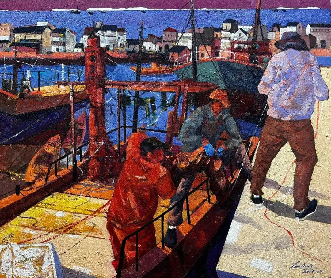 本次展览共展出60幅美术佳作,涵盖油画、水彩、国画等多种艺术形式。画家们他们或以浓墨重彩勾勒北海渔港,或以细腻笔触捕捉烟火日常,或以鲜活色彩描绘乡村景象。这些作品既是艺术创作活力的生动展现,更是文旅融合的鲜活实践——他们当画家将艺术融入生活,以创新形态定格时代风貌、记录城市变迁,让文化价值在笔墨间自然流淌,将创新之力助推北海文化繁荣发展。
