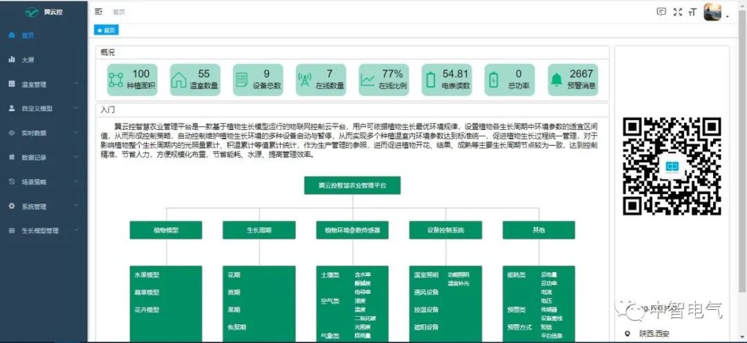 系统可以接入各种传感器、水肥一体机、遮阳系统、环境维护设备如:风机、湿帘、升温设备等。将所有设备纳入到一个系统中进行集中管控。