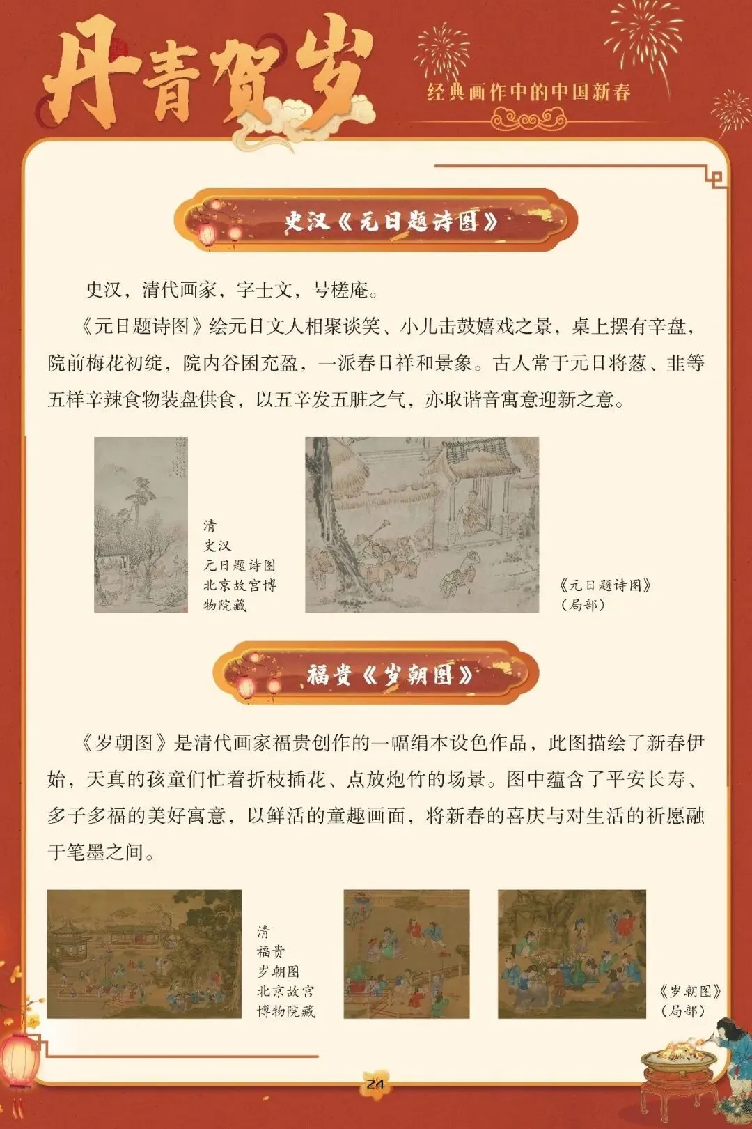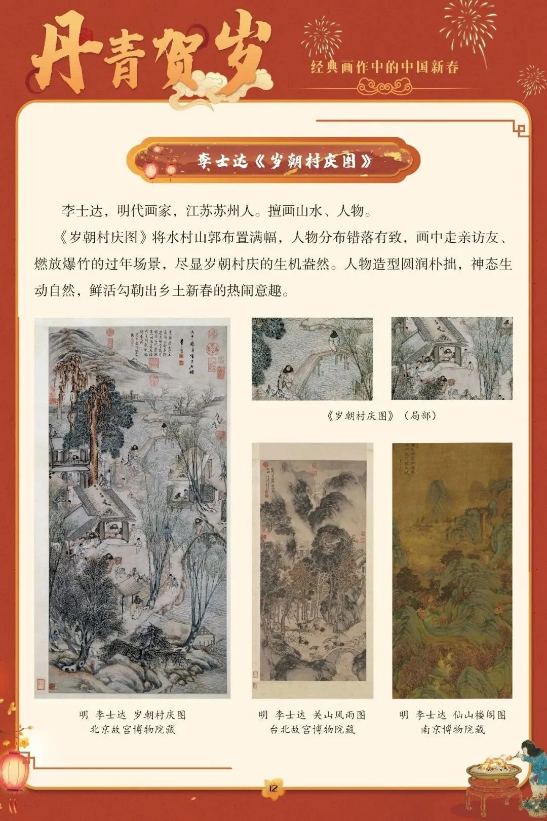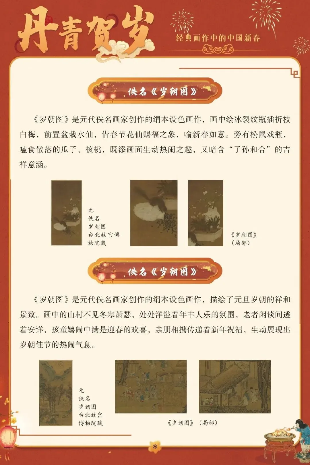 “一元复始,万象更新”,春节是中国人心中最隆重的岁时盛典,承载着辞旧迎新的祈愿与阖家欢聚的温情。这份深植于血脉的文化情愫,在历代丹青中留下了鲜活印记。