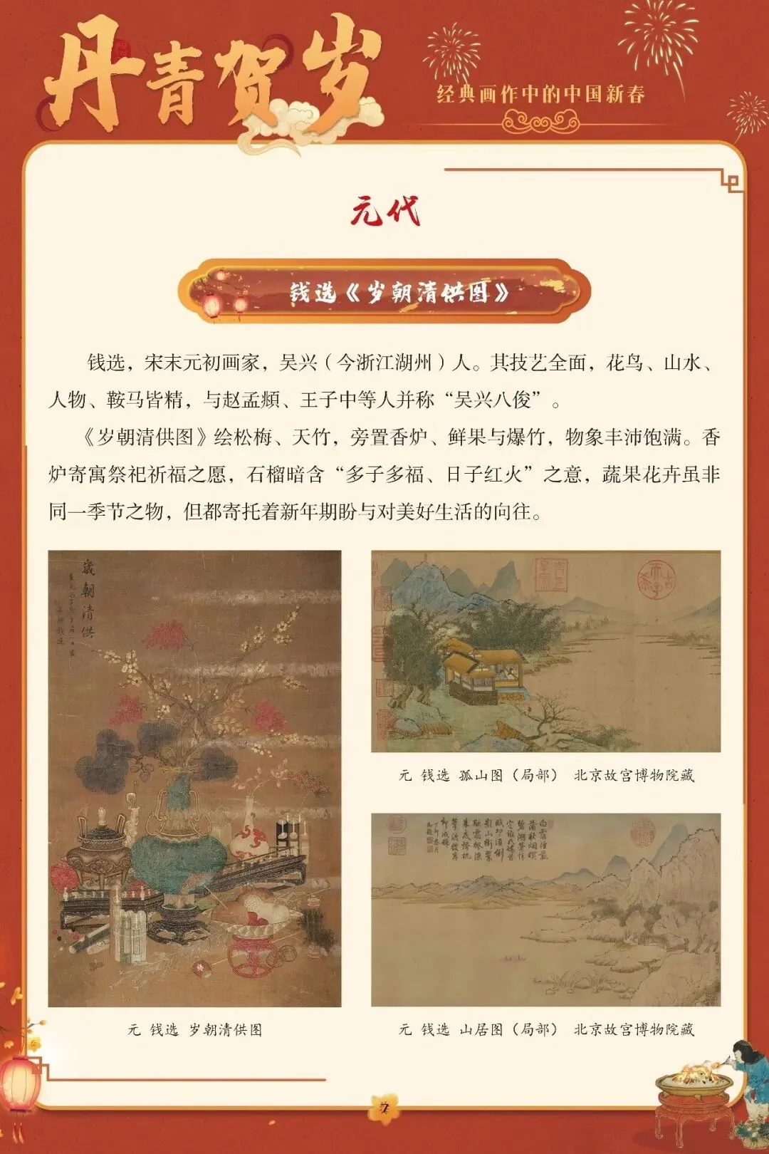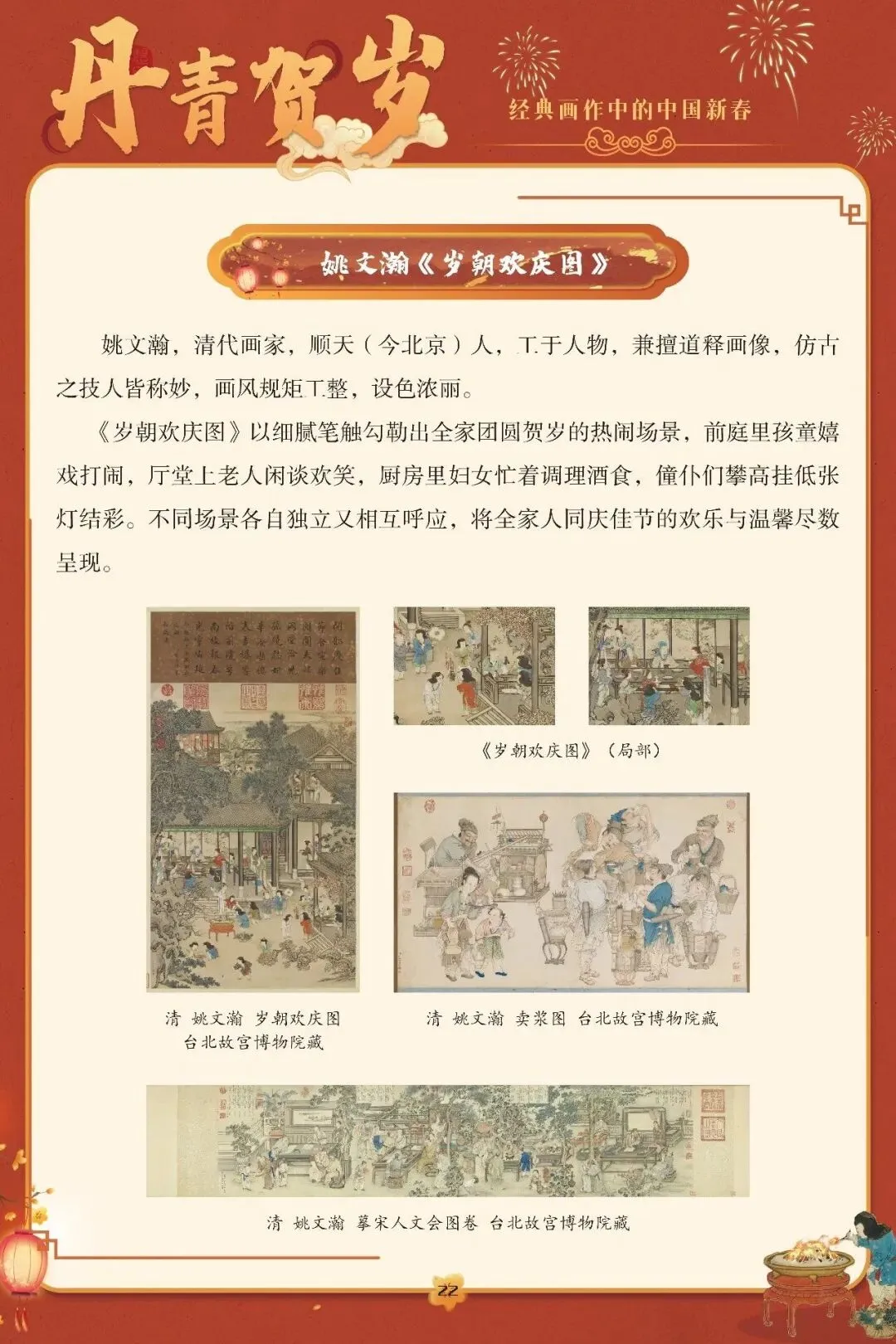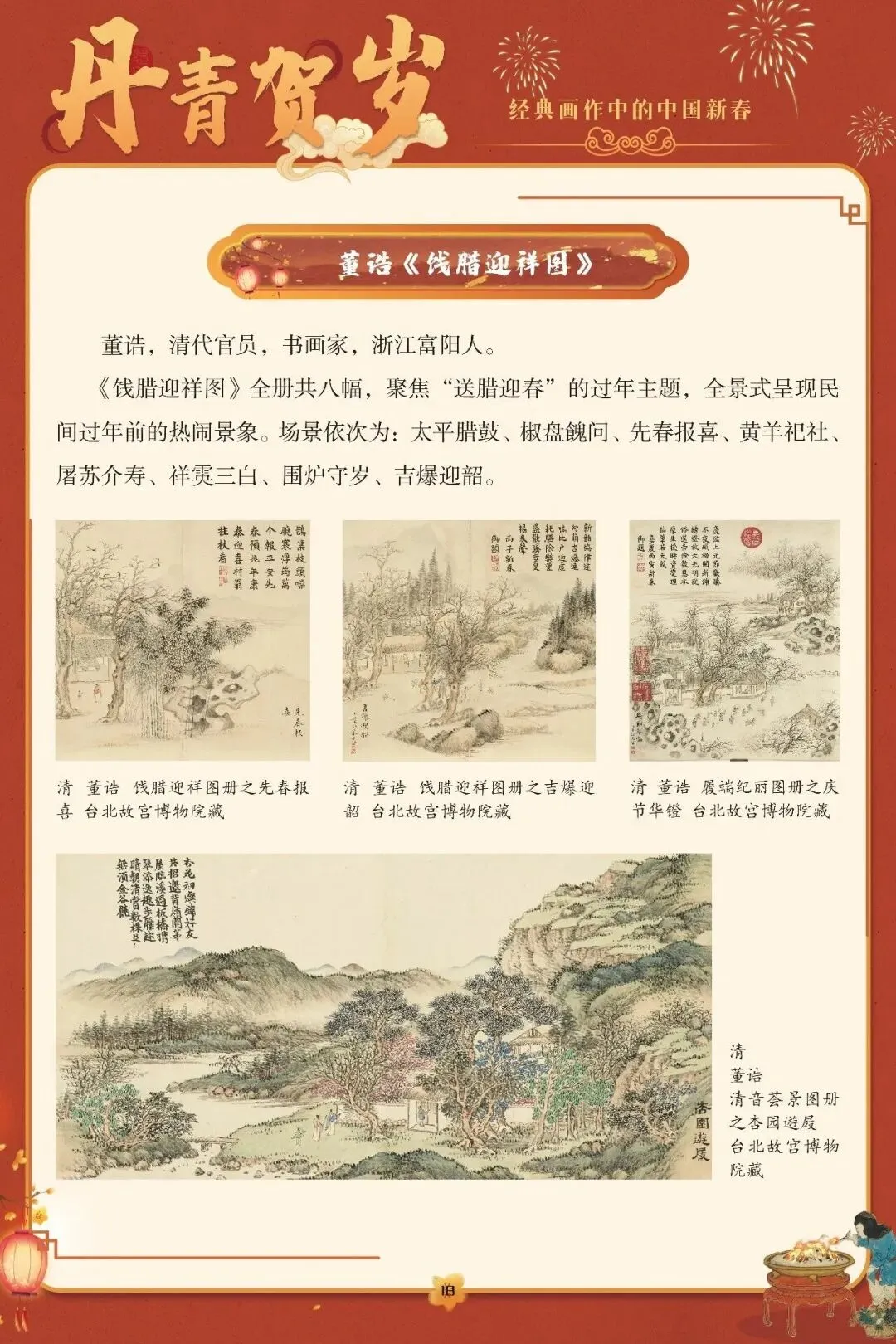 “一元复始,万象更新”,春节是中国人心中最隆重的岁时盛典,承载着辞旧迎新的祈愿与阖家欢聚的温情。这份深植于血脉的文化情愫,在历代丹青中留下了鲜活印记。