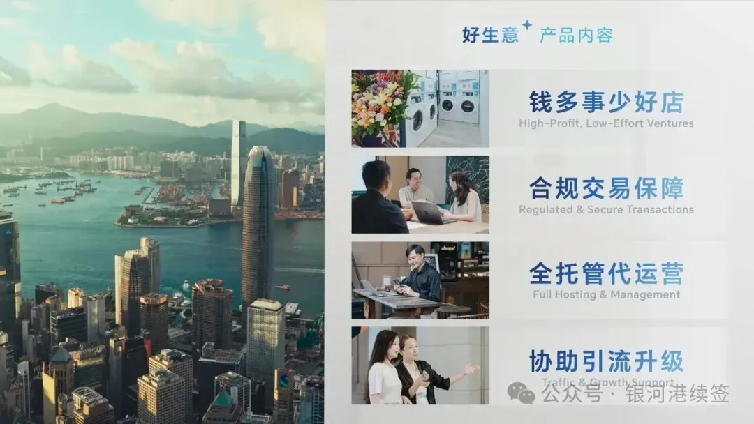 针对这些痛点,银河集团已正式推出"好生意"和"真经营"两大服务产品,专门帮助内地朋友轻松赴港创业!