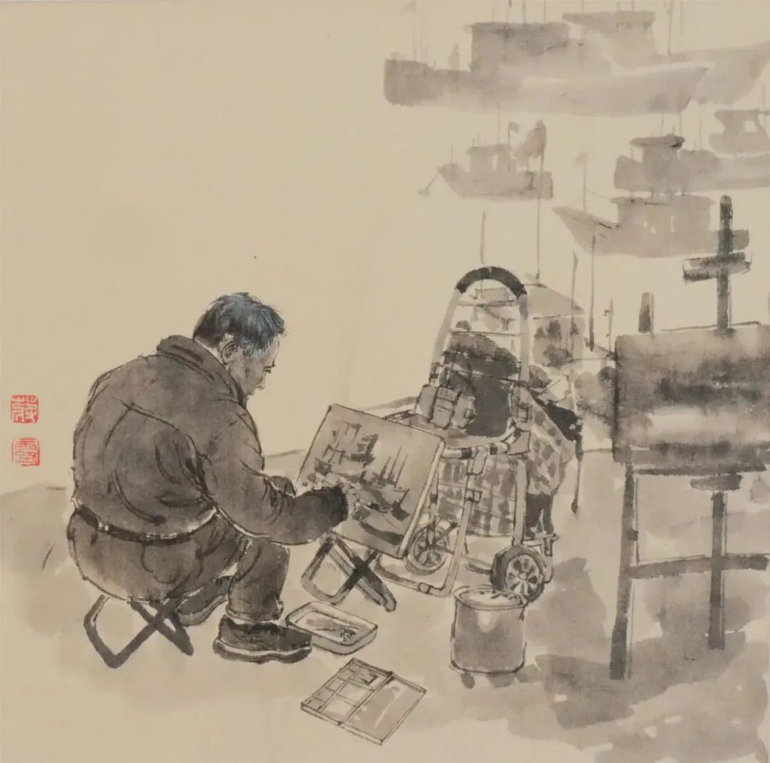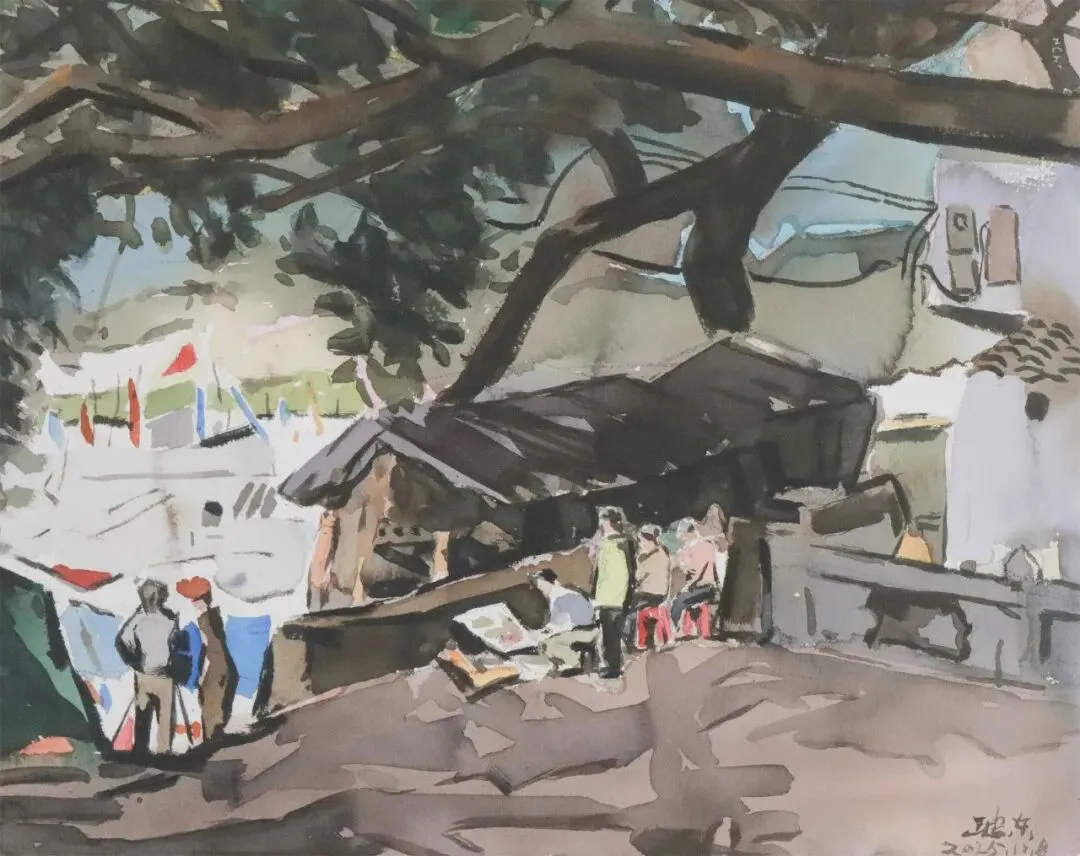 王建东《田寮码头写生忙》