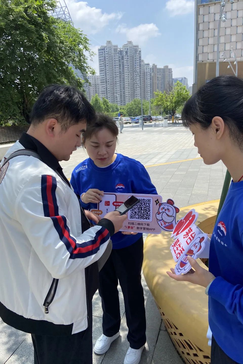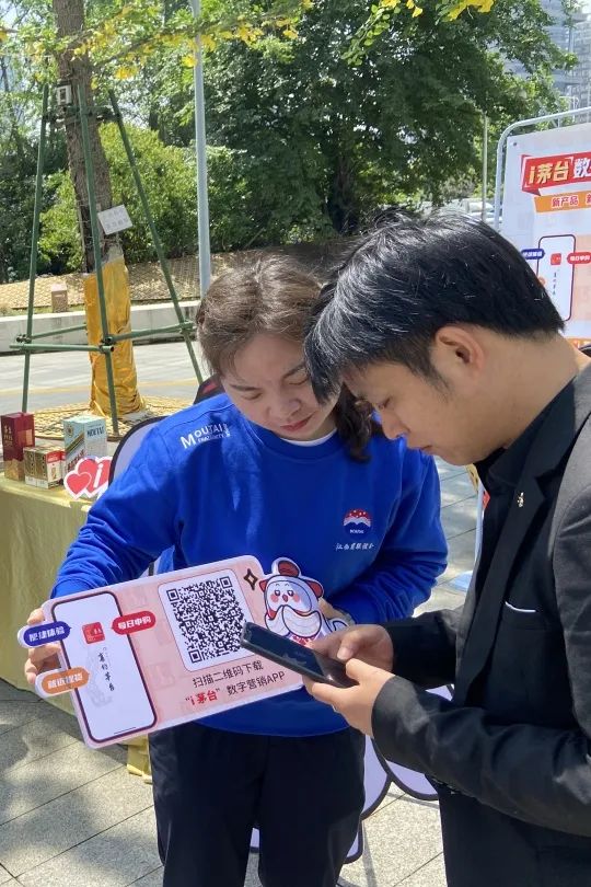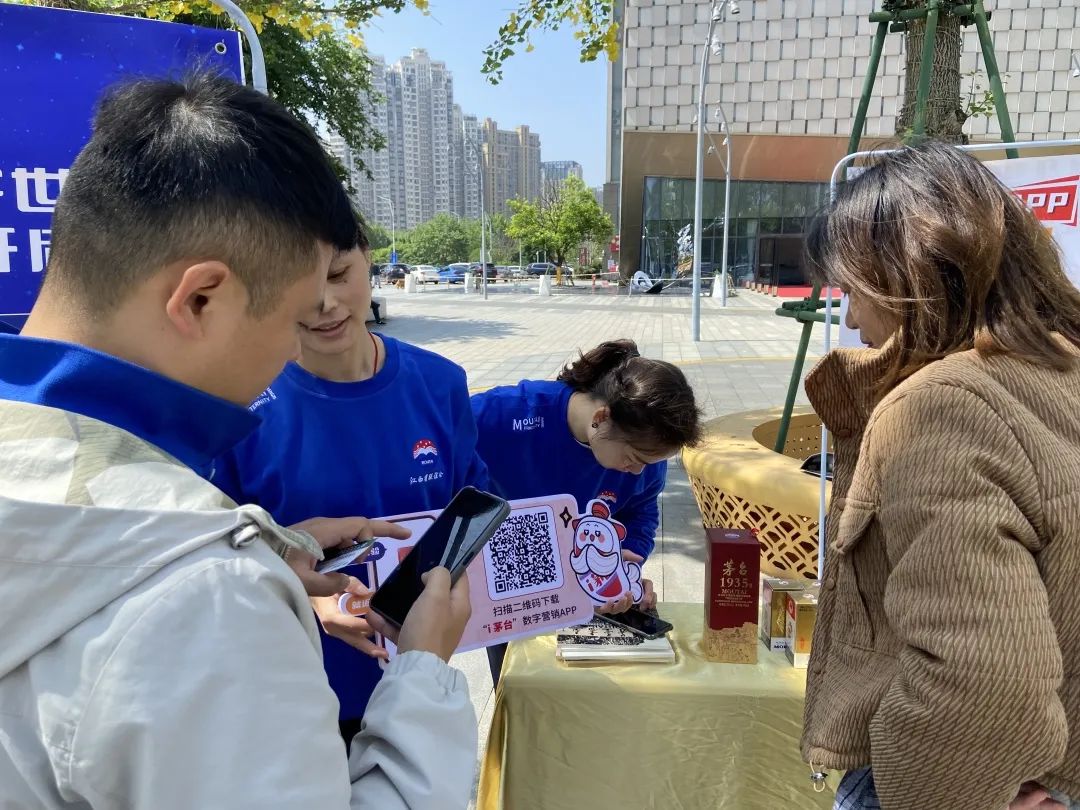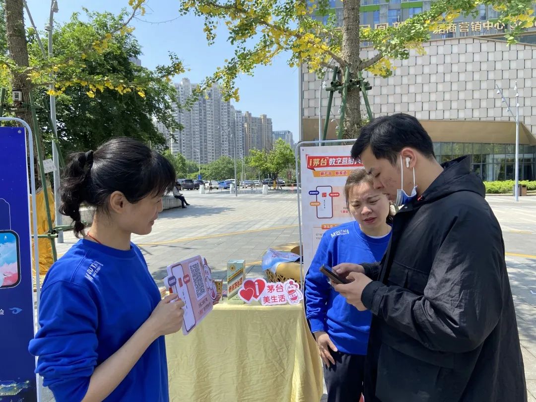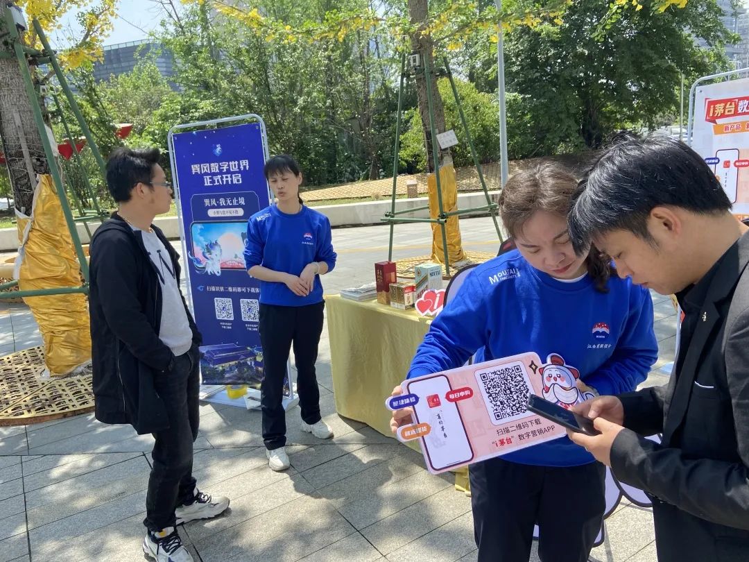 为了让更多消费者了解“i”茅台和巽风数字世界APP,专卖店员工组织开展“i茅台”和巽风推广活动,介绍宣传这两个平台成为我们一项必做工作,现场设立有i茅台和巽风APP宣传展架、二维码手举牌及精美礼品等,吸引了众多过往的市民驻足咨询、下载。我们以饱满的热情和优质的服务耐心引导大家了解i茅台和巽风APP,让茅台与更多群体、尤其与年轻群体的距离更加亲近。其中也有一位茅粉赵先生在i茅台APP里已成功申购到癸卯兔年,并且通过i茅台了解关于茅台酒的酿酒知识和茅台文化,他表示,接下来他还要继续申购,并将i茅台APP分享给朋友。i茅台和巽风数字世界深度还原茅台酿造环境、挖掘茅台历史文化和工艺工法,致力搭建一个创新、开放、和谐的数字家园,打造属于茅台和用户的平行世界。并将不断完善平台,为消费者提供美的产品,美的服务,美的文化,消费者的每一次使用,每一份坚持,每一丝热爱,每一句反馈都是对i茅台和巽风努力的见证,更是对小茅和小巽深深的“i”。我们也将持续做好i茅台和巽风APP的宣传推广工作,拓展i茅台和巽风受众群体,宣传茅台数字文化,展现茅台醇香之美,开展茅台智能营销时代。始终践行“酿造高品质生活”的不变初心,坚持以消费者需求为导向,通过“i茅台”和巽风让茅台美酒走进千家万户,不断满足人们对美好生活的向往和追求,让广大消费者真切感受茅台之美,生活之美。为坚定不移走好“五线”发展道路,积极践行“五合营销”,不断推进“文化茅台”建设深入人心,进一步巩固和拓展消费群体,进一步扩大i茅台App和巽风数字世界App的影响力,助力茅台酒市场高质量发展、大踏步前进。