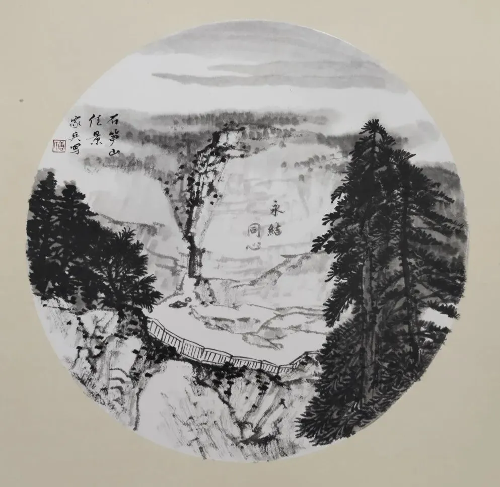 刘应川 《俯瞰松溉》中国画 37X37cm