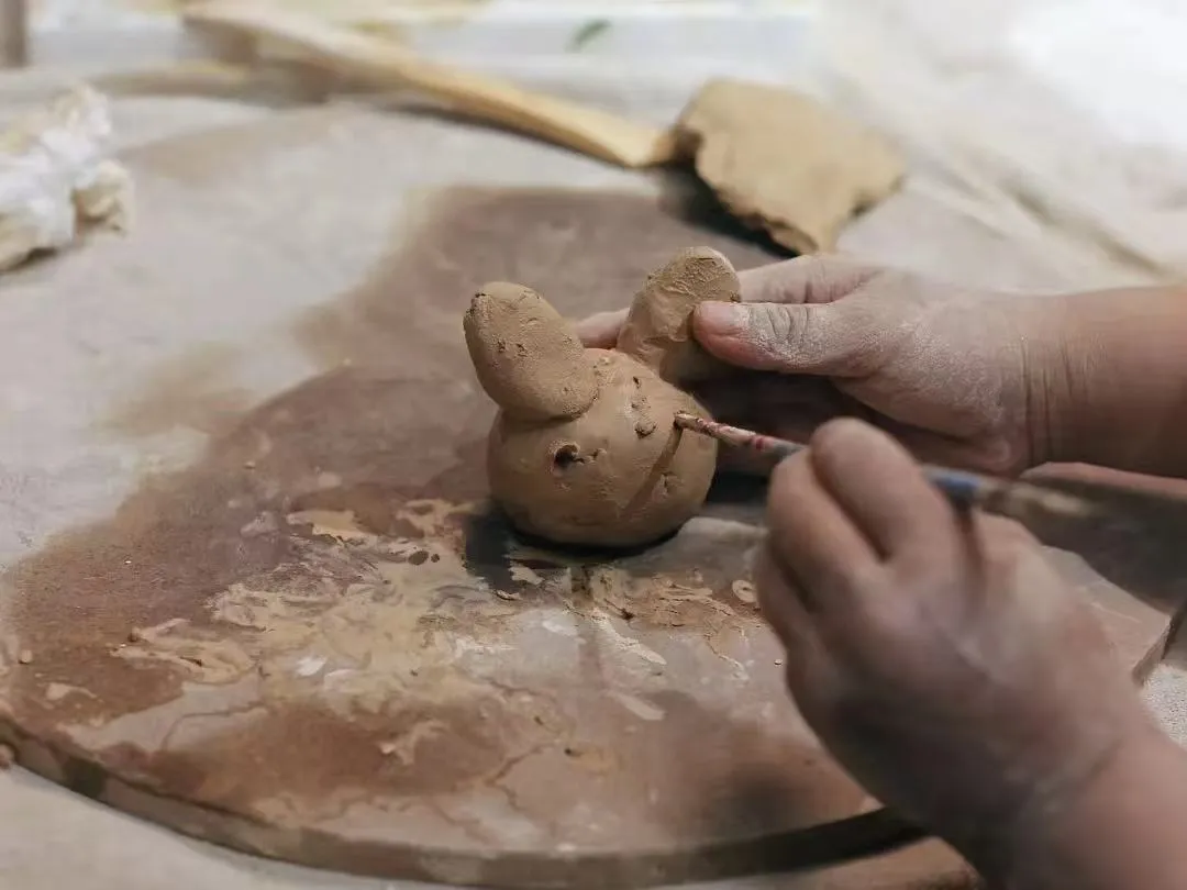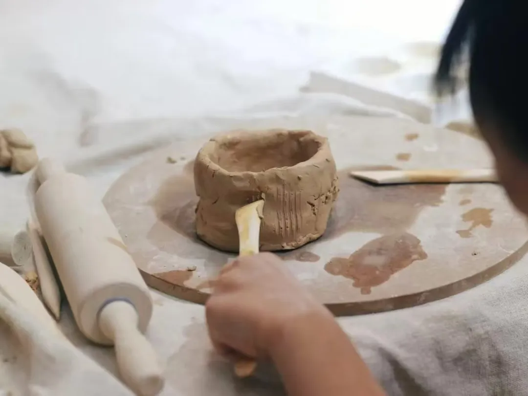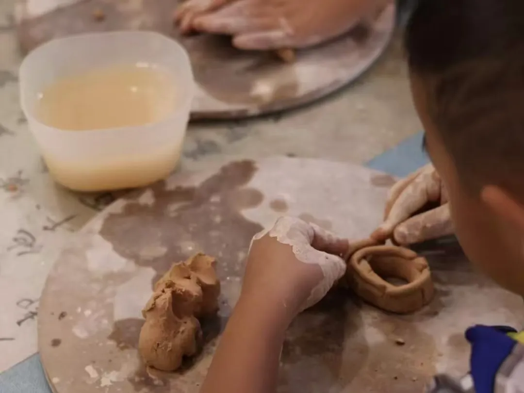 在“互动体验区”,小讲解员还指导来宾尝试简单的陶泥捏塑。
