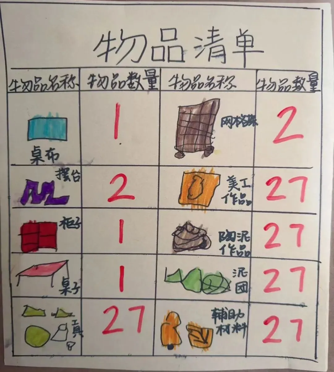 随后教师在《陶泥大调查》的表上与幼儿梳理了关键步骤与发现,并共创出一份属于自己班级的“制作陶瓷材料清单”。