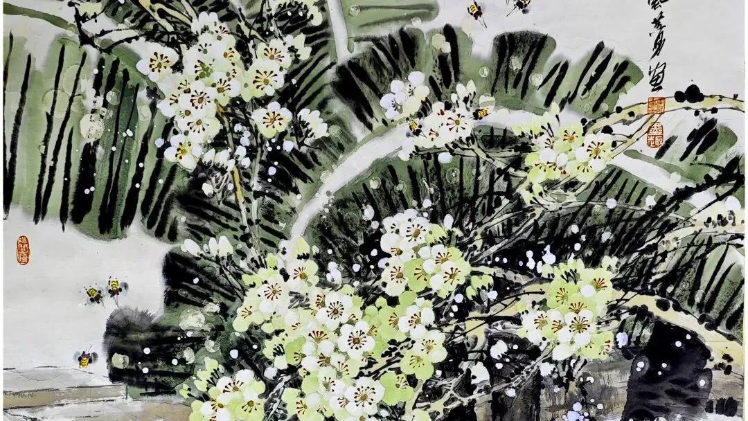 黄勇 《梨村三月》 中国画 98x90cm