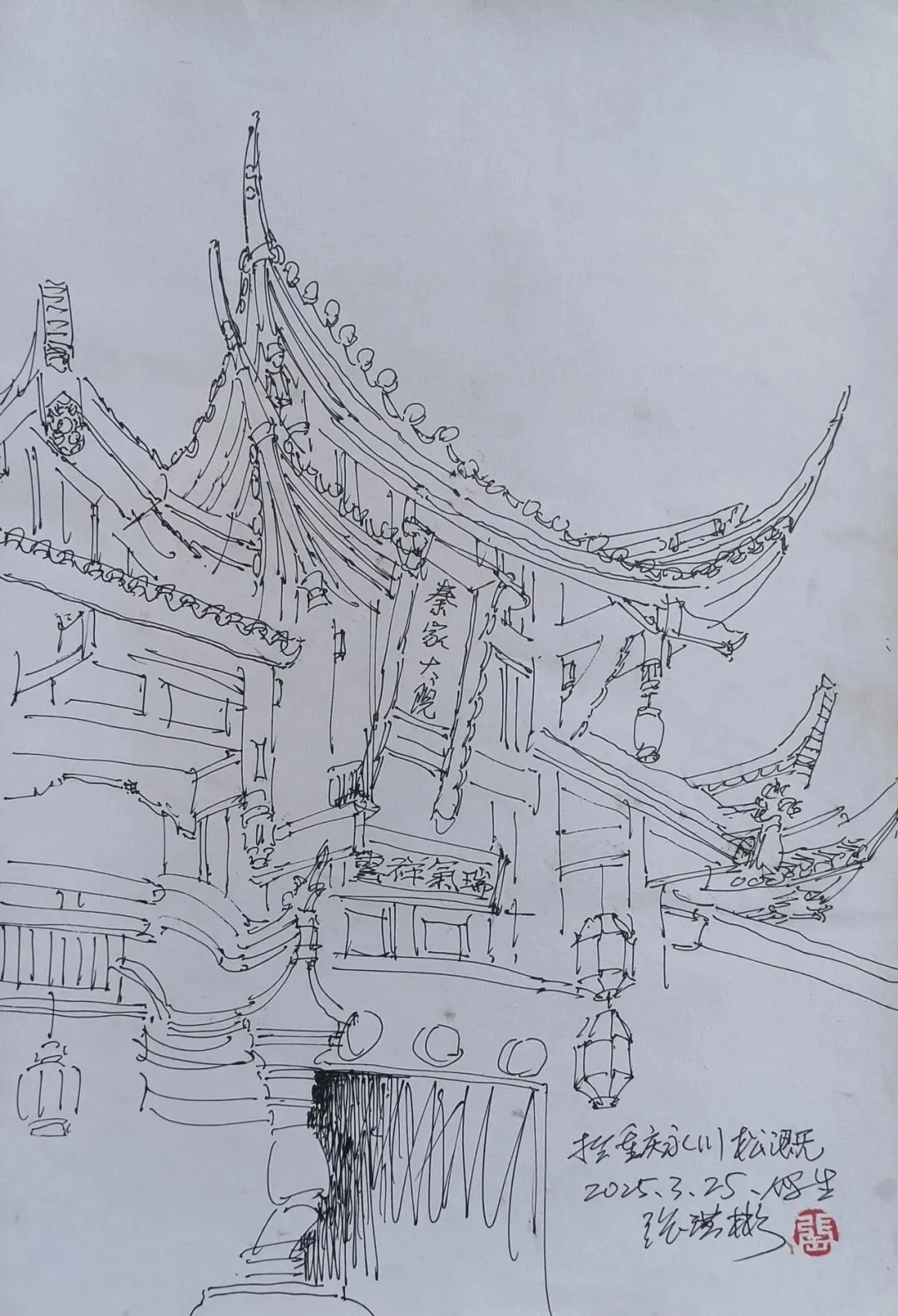 张洪彬《松溉古镇秦家大院写生》速写 39x27cm
