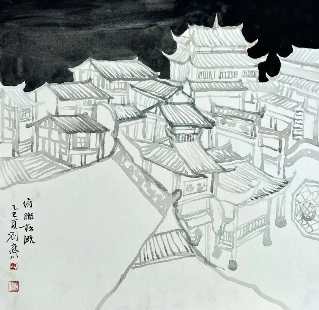 刘应川 《吉安写生》 中国画 37x37cm