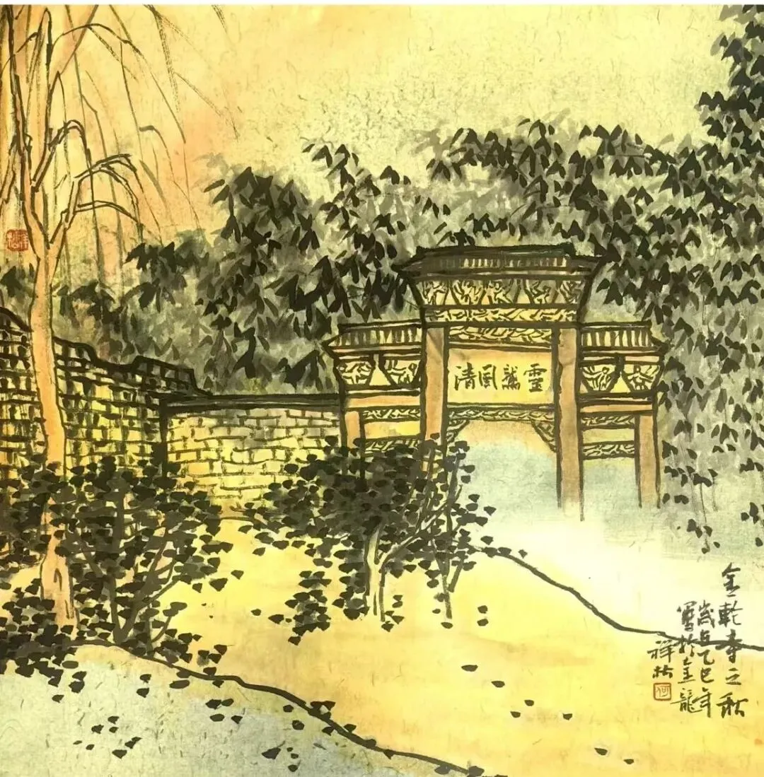何祥松  《金轮寺之秋》中国画 50x50cm