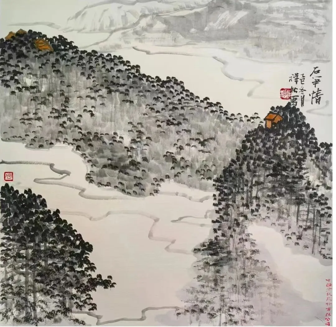 刘应川 《俯瞰松溉》中国画 37X37cm