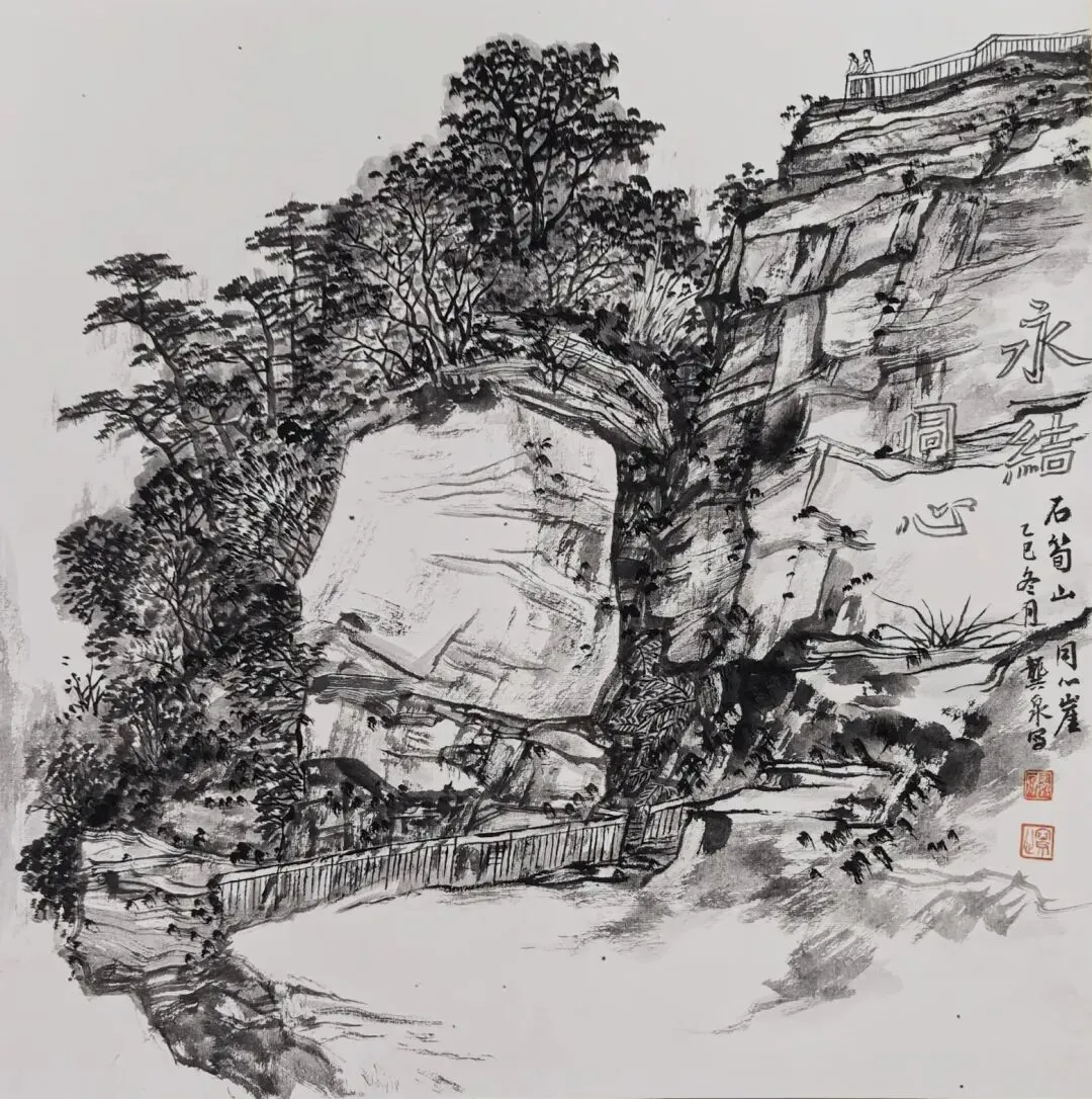 龚泉 《石笋山同心崖》中国画 50x50cm
