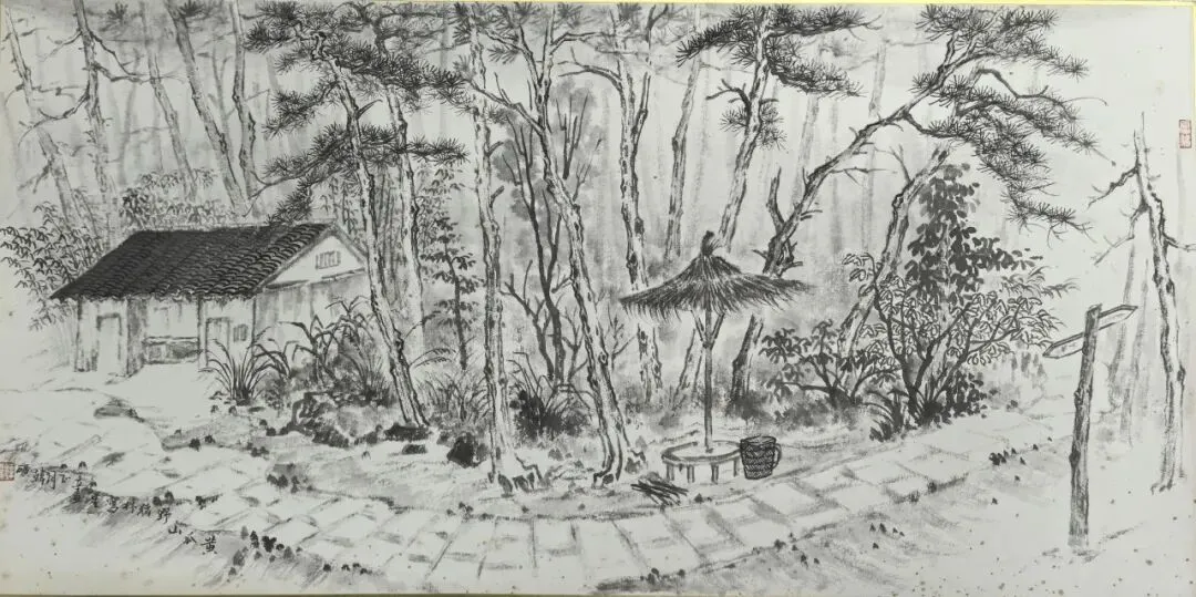 张洪彬 《吉安镇箭杆寺风景写生》速写 39x27cm