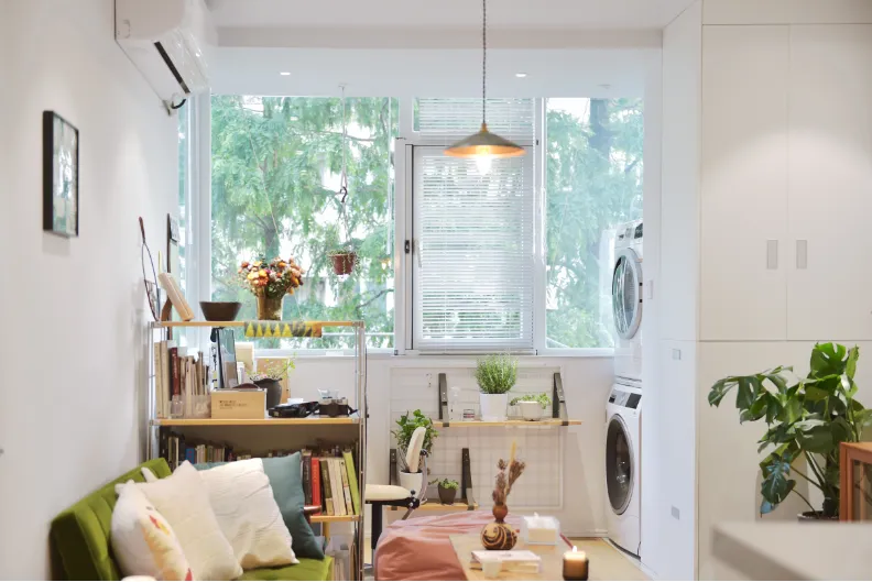 设计师在有限空间内通过不断重组整合,得到集合了居家办公、餐厨一体的超美日系小户型。