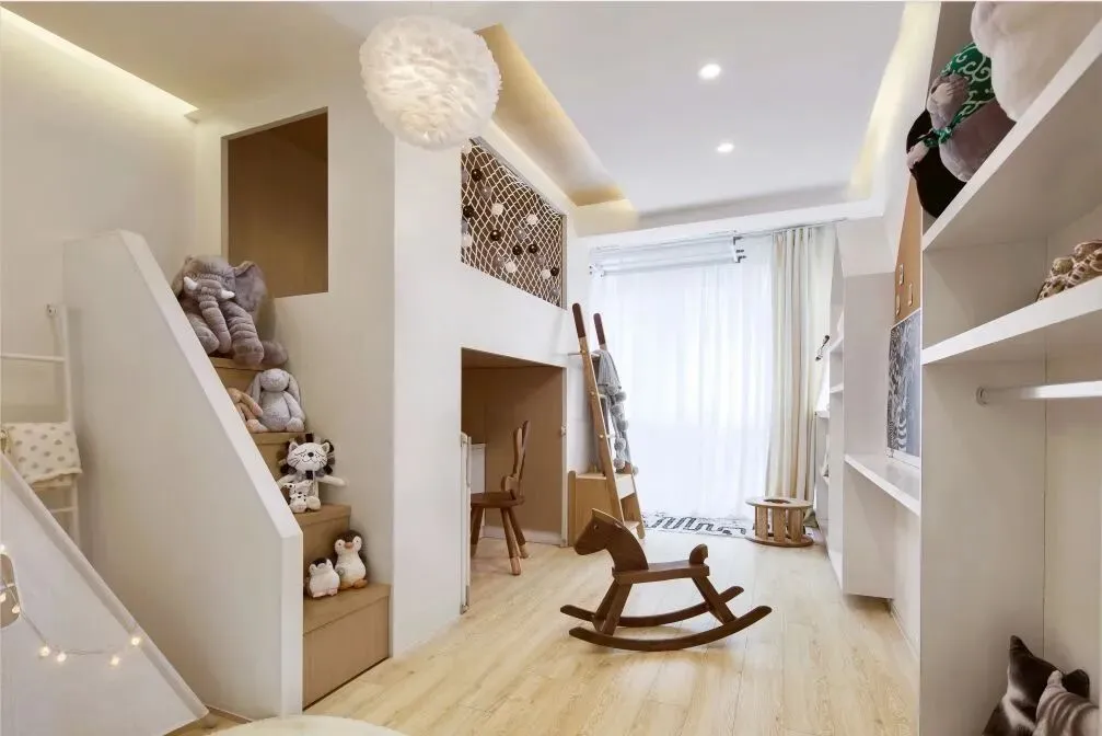 特别为未来将要出生的宝宝设计了可以三用的房间,利用推拉门将客卧改造成儿童活动房+客卧+书房。