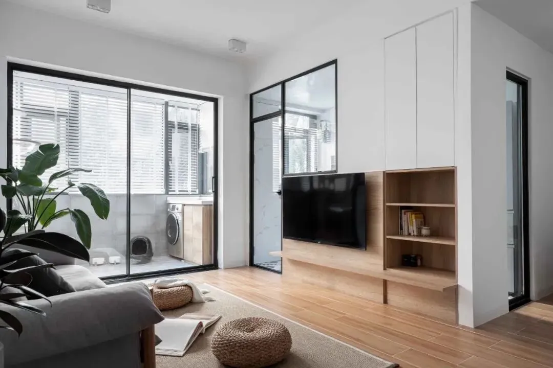 南京市中心的45平学区房,因为一扇室内窗让整个空间通透了起来。