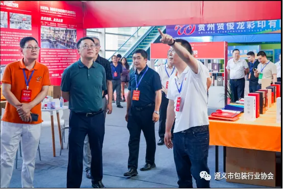 遵义市包装行业协会会长张勇(原秘书长)向市领导解说展会情况