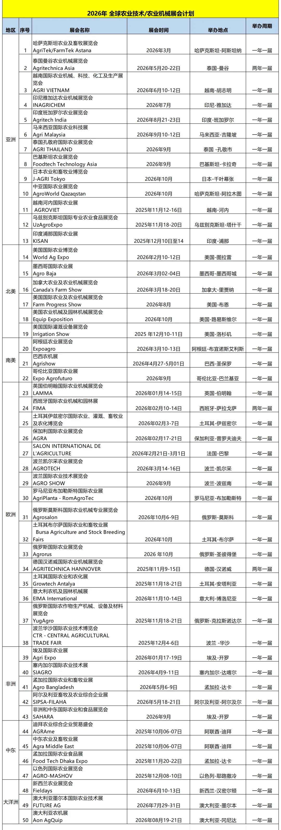 2026年农业技术和农业机械展览计划表