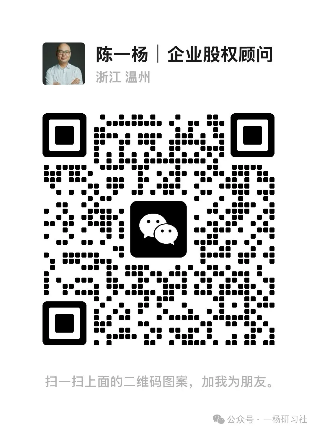 我是陈一杨,专注企业股权10年+,累计为200多家企业提供专业股权咨询。