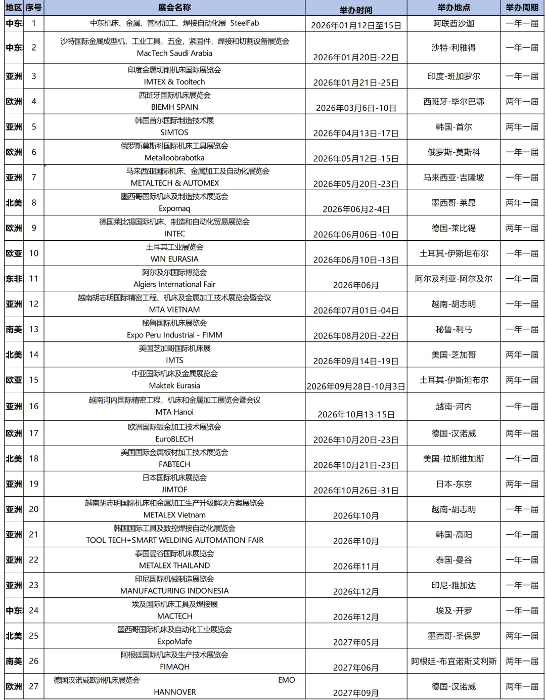2026年全球机床展会计划表