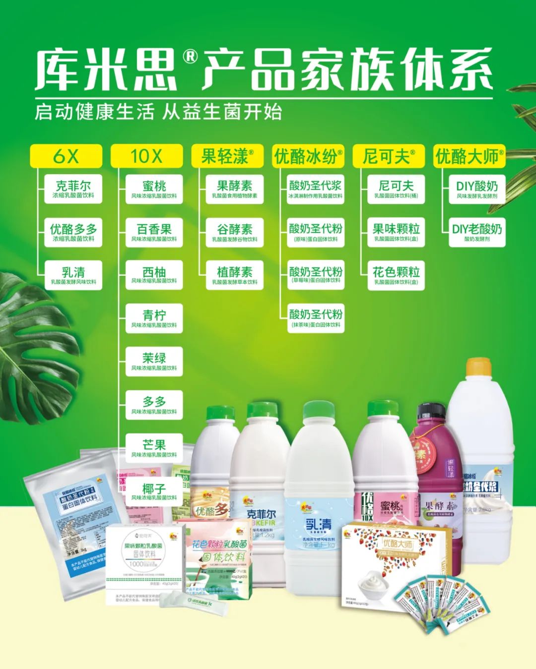 健康、天然、乳酸菌全发酵一直是生合所推崇和坚持的,唯有坚持“启动健康生活,从益生菌开始”的理念,方可让广大消费者认识、认知、接受。目前库米思®6X & 10X浓缩乳酸菌饮品、优酪大师®手工酸奶发酵剂,果轻漾®乳酸菌果酵素,尼可夫®花色/果味颗粒乳酸菌,优酪冰纷®酸奶圣代浆/粉,已被业界广泛应用餐饮水吧、连锁餐厅等餐饮行业,并得到高度认可。