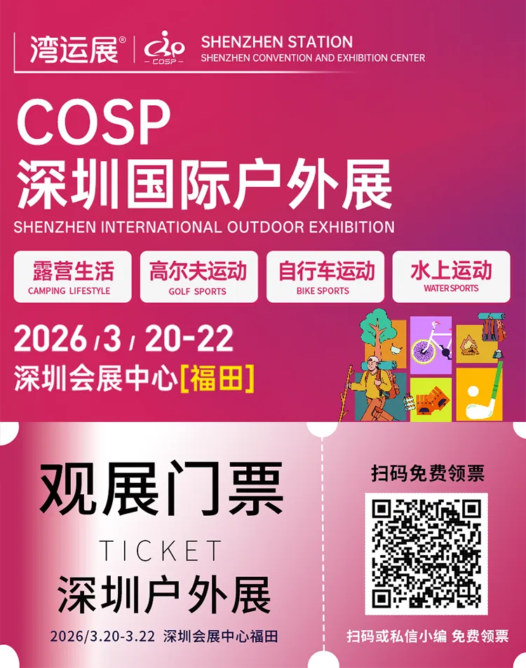 2026 COSP 深圳国际户外展早已超越了传统展会的边界,成为户外产业资源聚合、趋势研判、生态共建的核心枢纽。3月20-22日,深圳会展中心(福田馆),诚邀全球户外人共赴盛会,共探户外产业高质量发展的新未来!