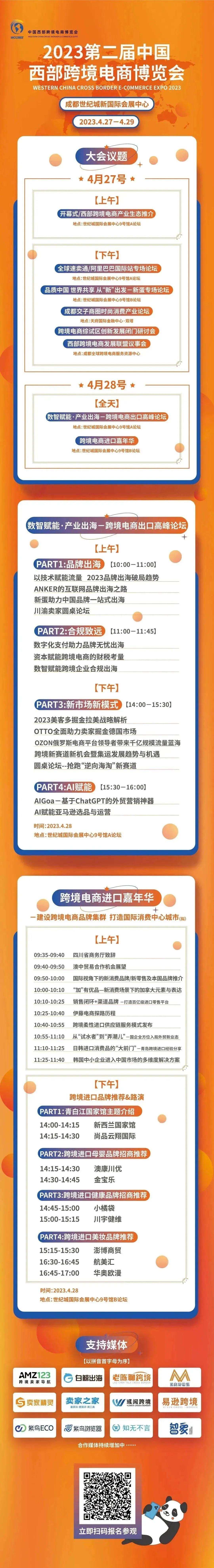 4月27日下午在9号馆论坛B区将发布跨境电商新青年培养计划暨第三届中国西部跨境电商创新创业大赛启动,推动新技术应用培养创新型跨境电商人才,多方协作构建育人共同体,为跨境电商行业健康快速发展赋能!