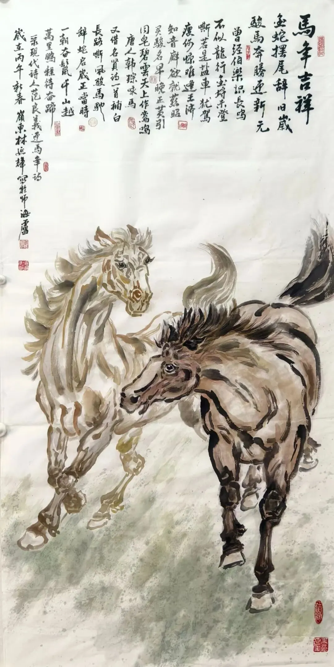 骐骥乘风开远道,潮声带韵入新图。在这充满生机与希望的丙午之年,让我们一同步入这方艺术天地,感受骐骥千里的磅礴意志,聆听潮韵奔腾的铿锵节奏,共赴一场关于坚持、征程与理想的美妙奔赴。