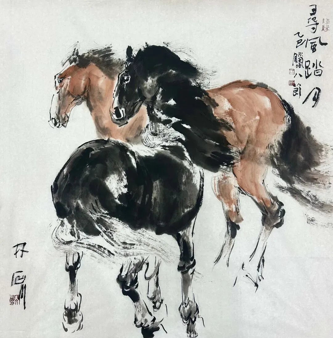 马,自古便是昂扬奋进的象征,尤以“骐骥”为喻,寄托了人们对千里之志与坚韧之力的崇高赞誉。《荀子》有云:“骐骥一跃,不能十步;驽马十驾,功在不舍”,道出了恒心与毅力的真谛;《史记》载“骥之千里,伯乐先识”,则寓含了对知遇与机缘的深刻思考。在诗词画意中,马的形象更与家国情怀、个人抱负紧密相连:杜甫以“骁腾有如此,万里可横行”抒写壮怀,李贺借“此马非凡马,房星本是星”寄托奇志。马,不仅是驰骋疆场、开辟山河的伴侣,更是“路遥知马力”的持久象征,激励人们笃行不怠,奔赴远方。