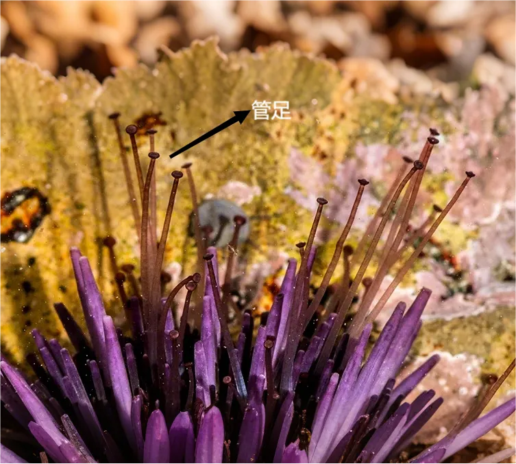 海胆的管足是其水管系统的重要组成,遍布棘刺之间。其吸盘吸附力惊人,既能抓牢岩礁抵御水流,又能配合棘刺爬行翻转。它不仅是呼吸和摄食的帮手,还能通过神经细胞感知水流、接收化学信号等,是妥妥的海胆生活利器。