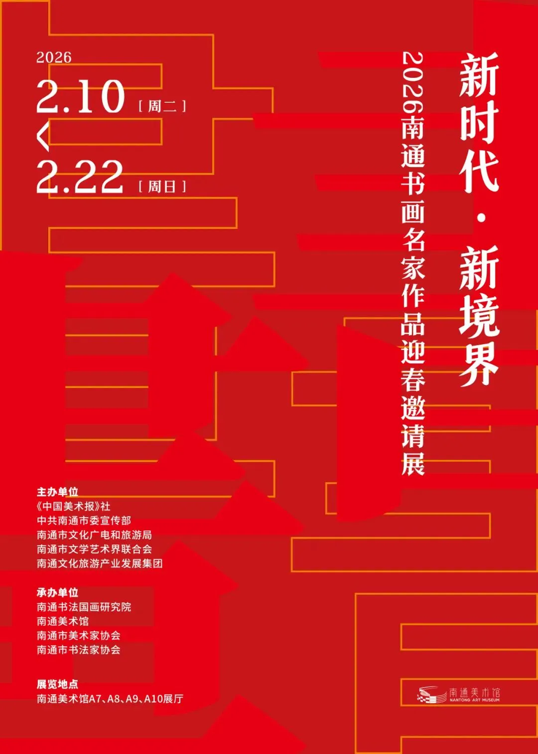 2026年为“十五五”规划开局之年,为深入践行习近平文化思想,积极贯彻落实党中央关于建设社会主义文化强国的战略部署,促进南通书画艺术事业繁荣发展,集中展现新时代文艺工作者的最新创作风采及丰硕成果,擦亮“中国美术南通现象”品牌,特举办“新时代·新境界——2026南通书画名家作品迎春邀请展”。