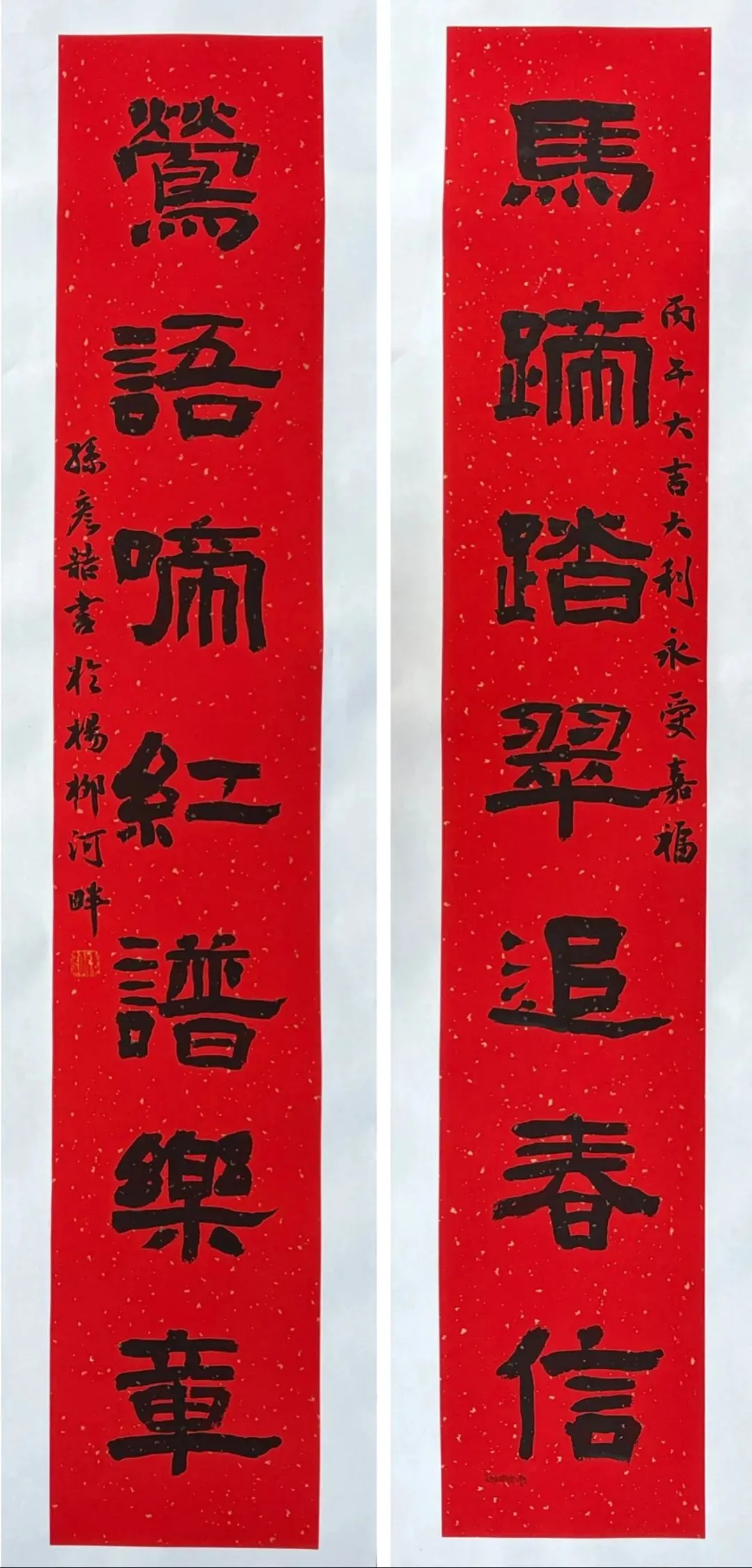 ■ 释文:到处花开春浩荡·连声竹报岁平安