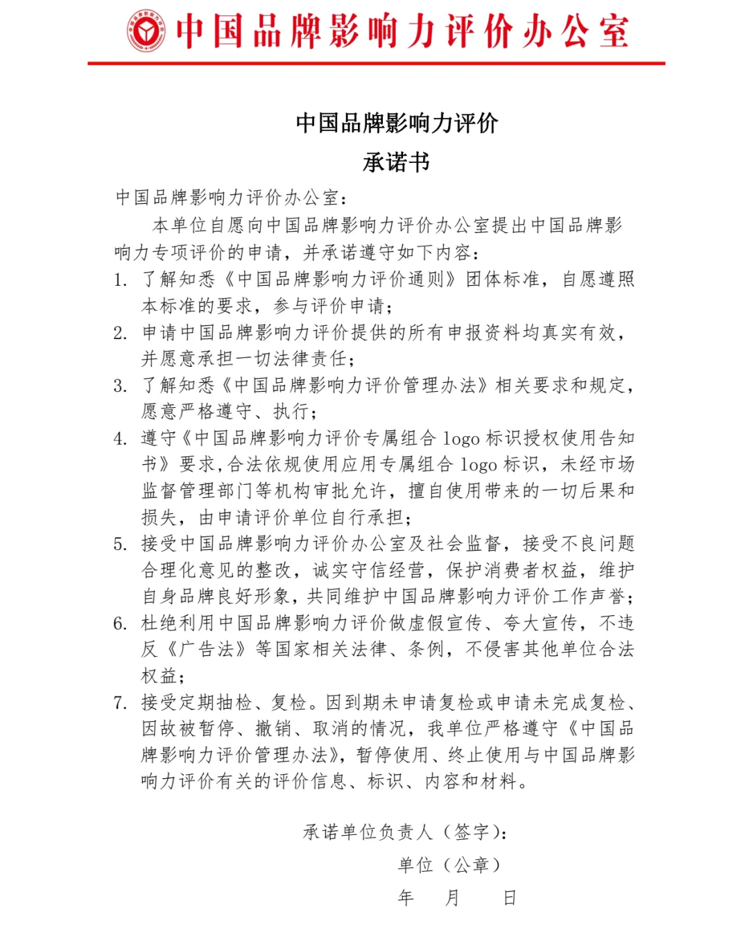 一、参与中国品牌影响力评价的单位需提交如下材料: