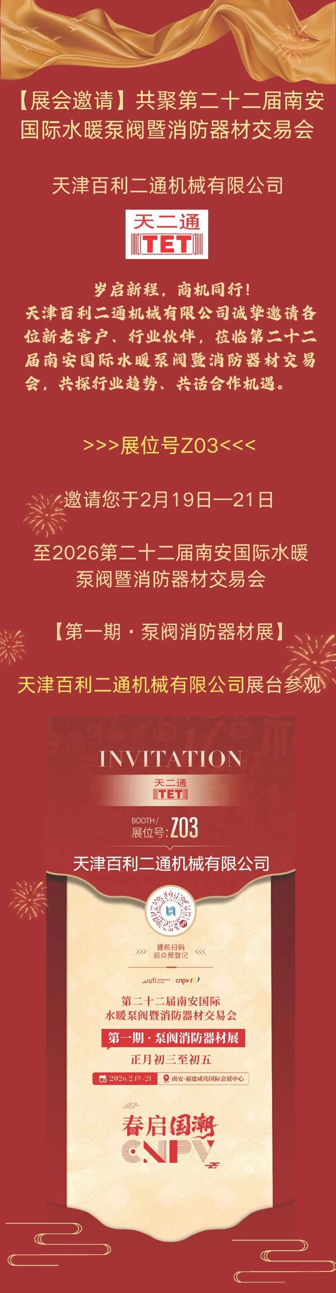 天津百利二通机械有限公司邀您共聚第二十二届南安国际水暖泵阀暨消防器材(展位号Z03)