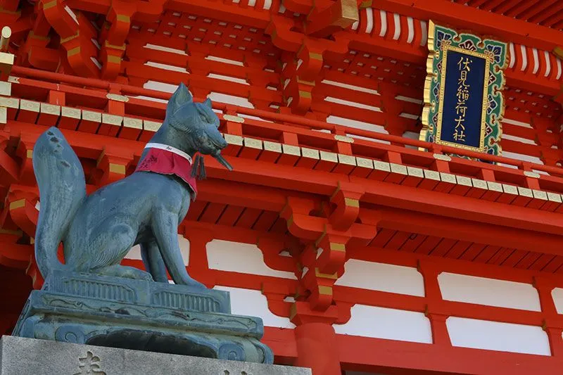日本京都伏见稻荷大社的狐狸石像,