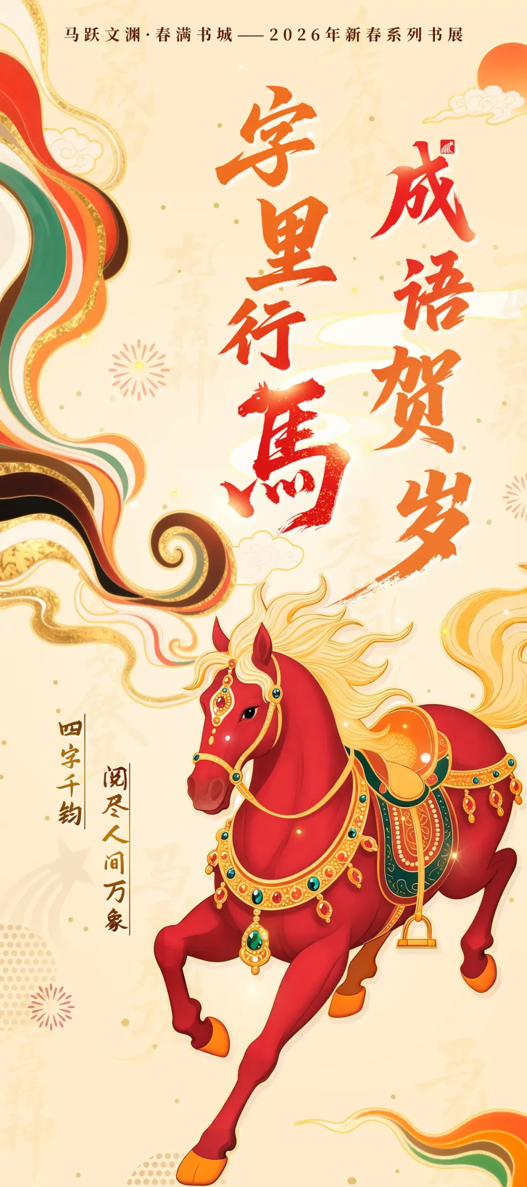 接下来,让我们跟随十余幅展图,一同走进超星2026马年新春系列书展之“字里行马·成语贺岁”主题展,透过四字成语的隽永窗口,看见不同的人生故事,品味岁月沉淀下的温情与力量。