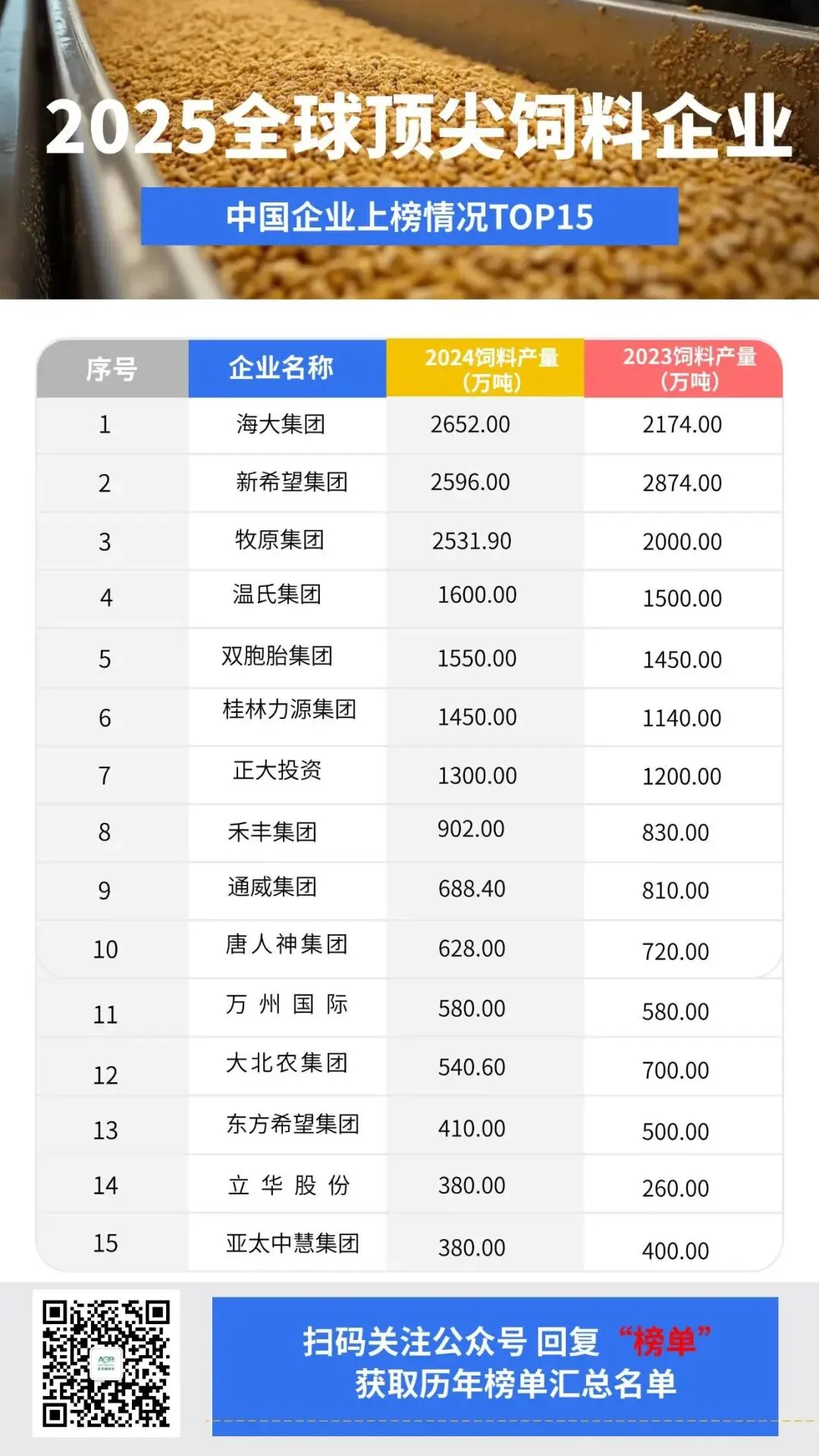 这份榜单背后,是中国企业的集体奋进。2025年,海大、新希望、牧原这三驾马车,年产量齐齐冲破2500万吨关口,将行业顶峰的入场券提升到了新的量级。温氏、双胞胎等企业也稳居全球前十,共同构筑了坚实的“中国军团”。