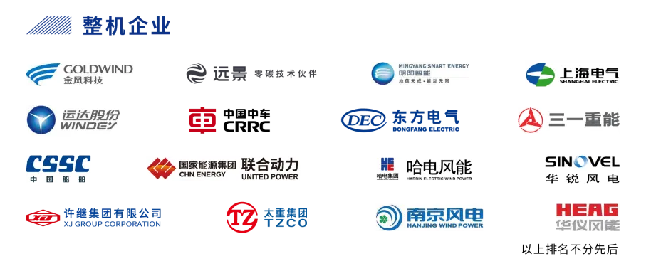 目前已有国内外500余家企业报名参展。金风科技、中国船舶、中国中车、明阳智能、远景能源、电气风电、哈电集团、运达股份、东方风电、联合动力、华锐风电等近20家整机企业,阳光电源、特变电工等行业头部企业均已落实展位。