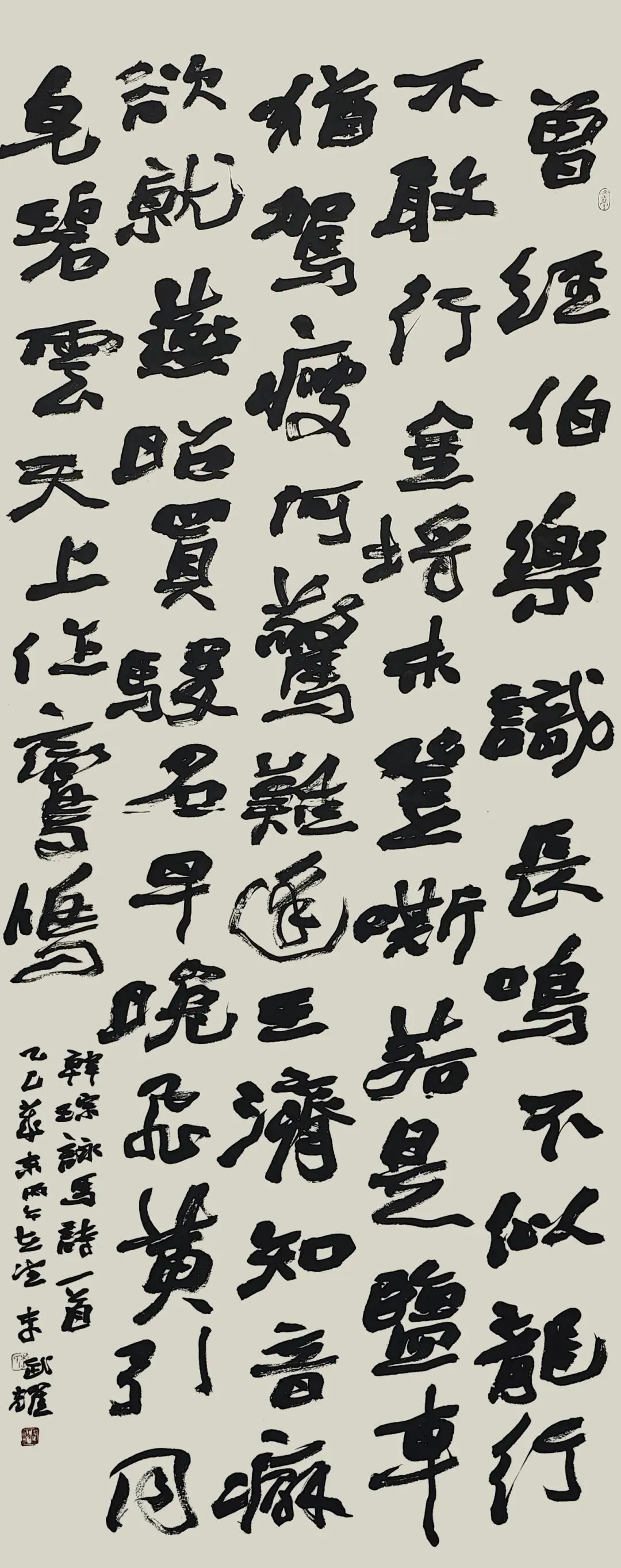 《韩琮咏马诗一首》李武耀 隶书 179×69cm