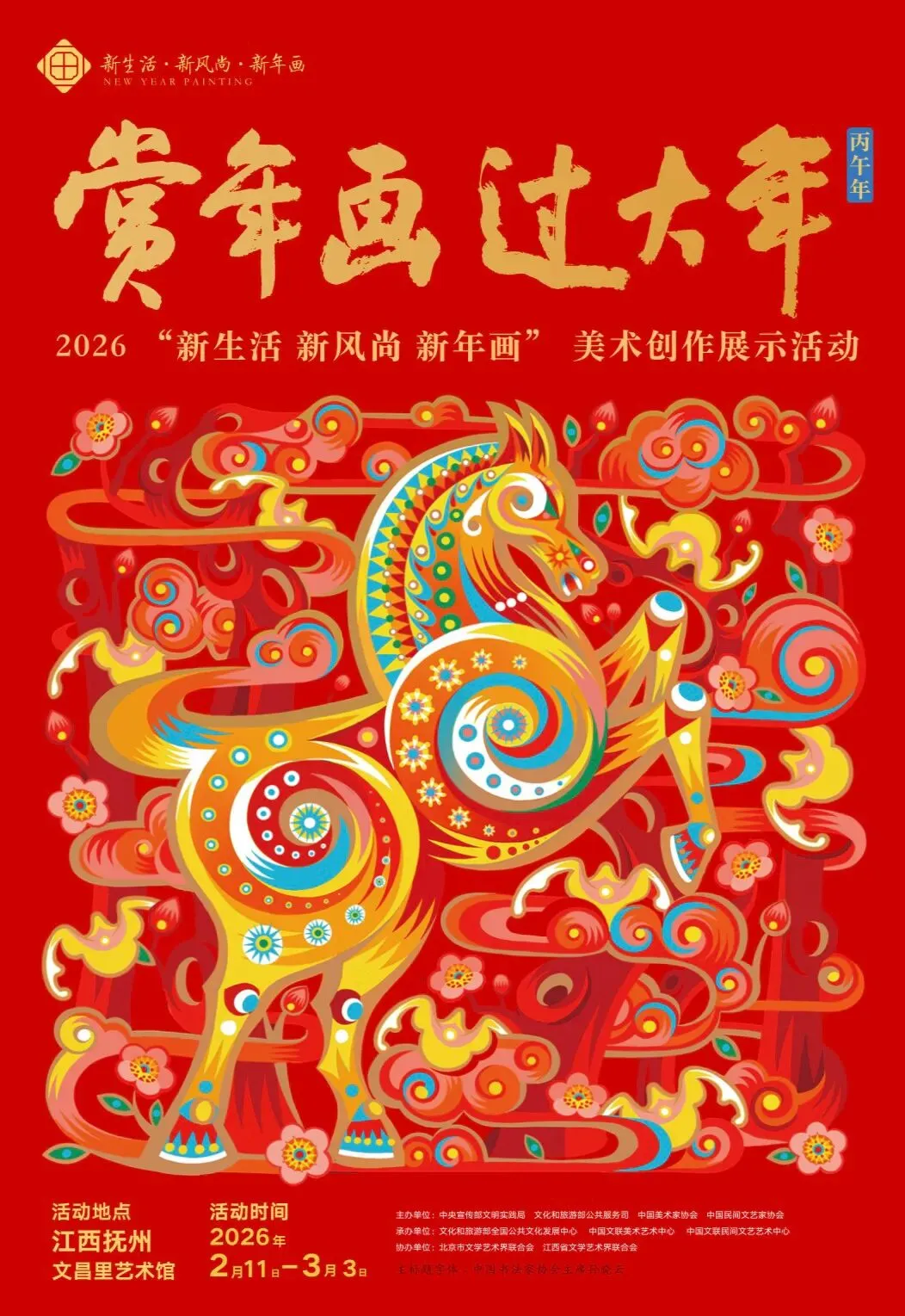为深入学习贯彻党的二十届四中全会精神,传承弘扬中华优秀传统文化,丰富人民群众节日精神文化生活,激励广大群众振奋精气神、共创新生活,中央宣传部文明实践局、文化和旅游部公共服务司、中国美术家协会、中国民间文艺家协会联合举办2026年“新生活 新风尚 新年画”美术创作展示活动。