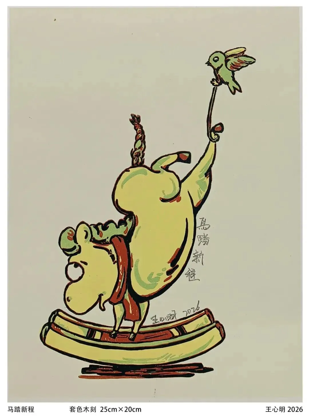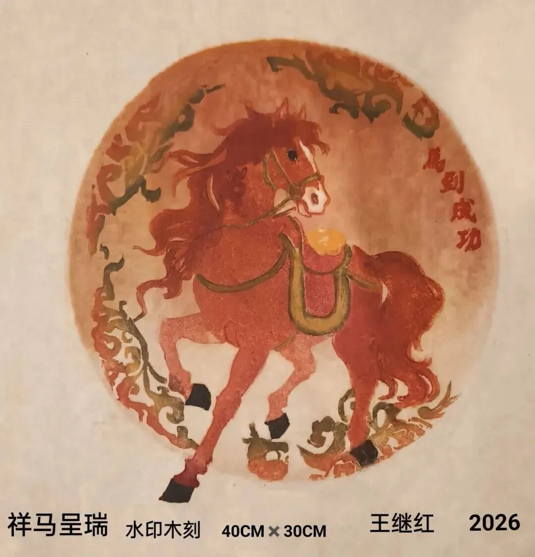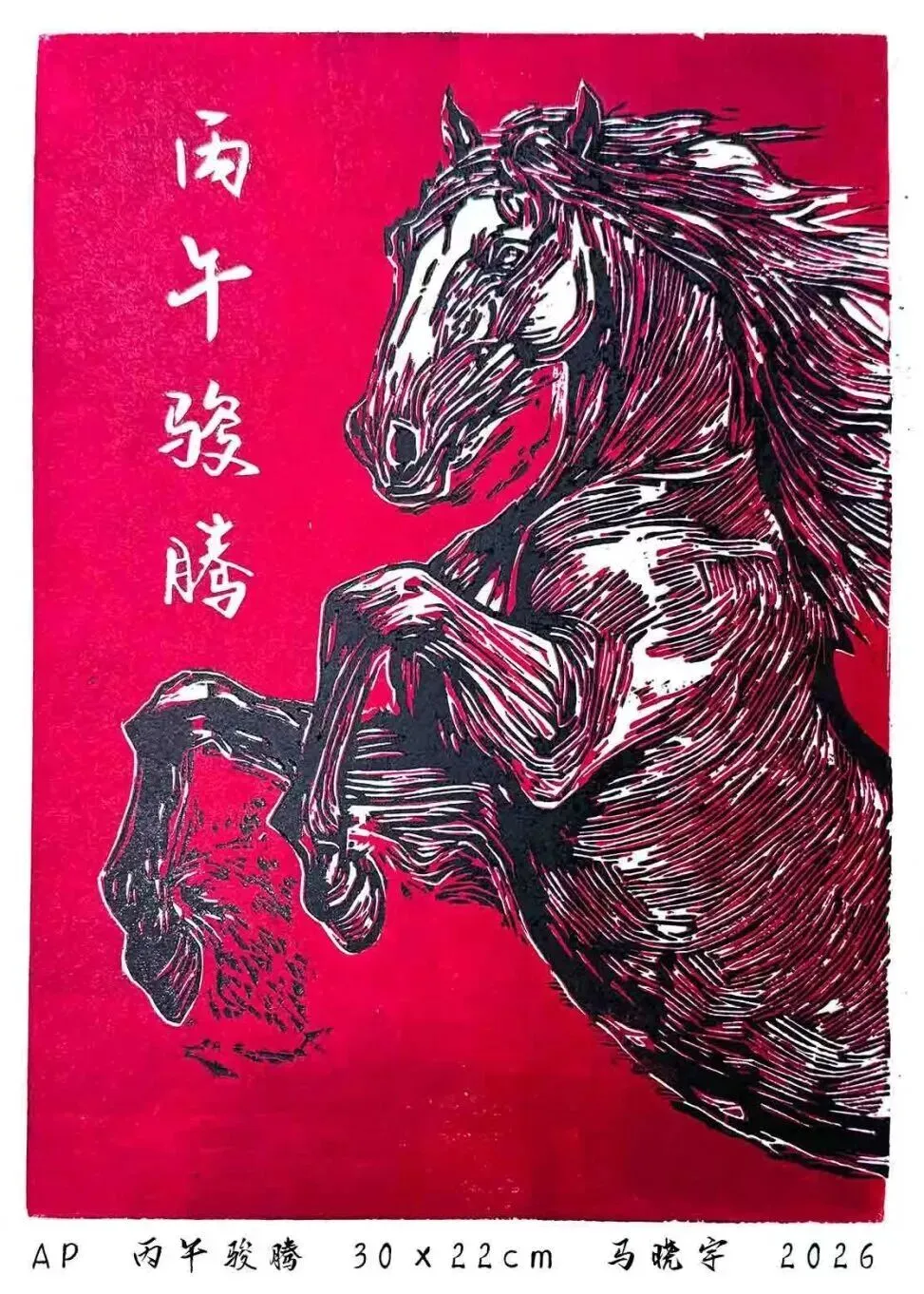 展览精选套色木刻、水印木刻、黑白木刻、丝网版等多个版种,每幅作品都凝聚着艺术家对黑土地的深情厚意。一刀一刻,刻出的是冰雪天地间骏马的矫健身姿;一色一墨,印出的是新春佳节的喜庆祥和。这些作品不仅展现了龙江版画的独特魅力,更传递着“一马当先”的奋斗精神和“马到成功”的美好祝愿。愿这些饱含匠心的版画作品,为您的新春增添一抹艺术的亮色,也为新的一年送上最美好的祝愿——龙马精神,万象更新!马到成功,好事连连!